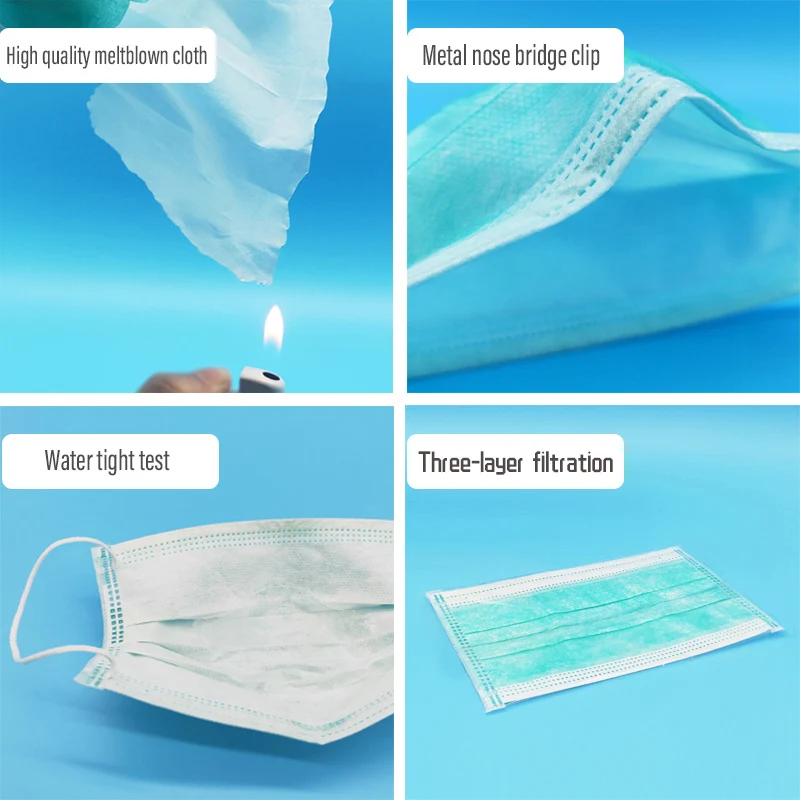 Одноразовая медицинская маска для лица Уход за кожей лица защиты 3 слоев фильтр ушной нетканые дышащая хирургическая маска Зеленый, для взрослых, газовое платье для взрослых Рот