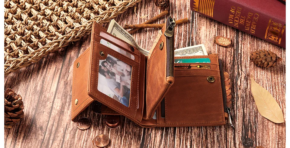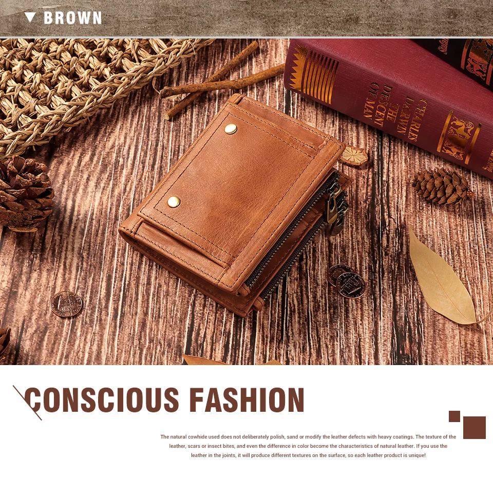Мужской кошелек KAVIS из натуральной воловьей кожи, маленький бумажник с монетницей, мини-кредитница, винтажное портмоне на защелке, Pockect