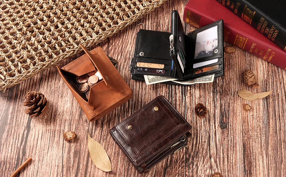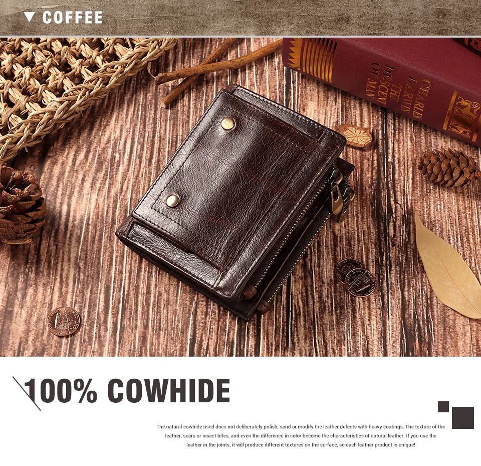 Мужские кошельки RFID из бычьей кожи, складной винтажный короткий б...