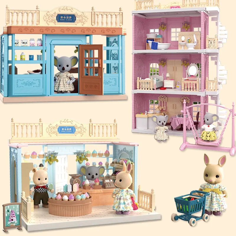 DIY ручной работы кукольный домик моделирование дома игрушка миниатюрный кукольный домик вилла коала город Ванная Кухня игрушки для спальни для детей