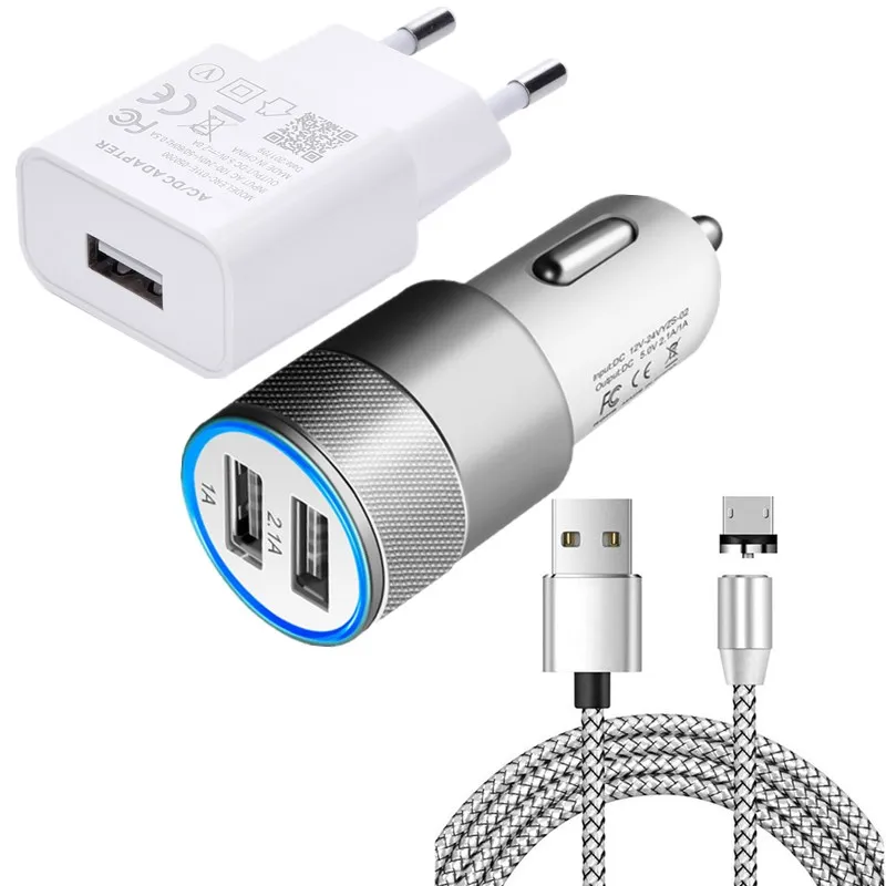 Сетевое зарядное устройство для путешествий с европейской вилкой, металлическое автомобильное зарядное устройство с магнитным кабелем Micro USB для Huawei Y8S, Y6S, Y5 Lite, Y6, Y7, Y9 2018, 2019, Honor 9A