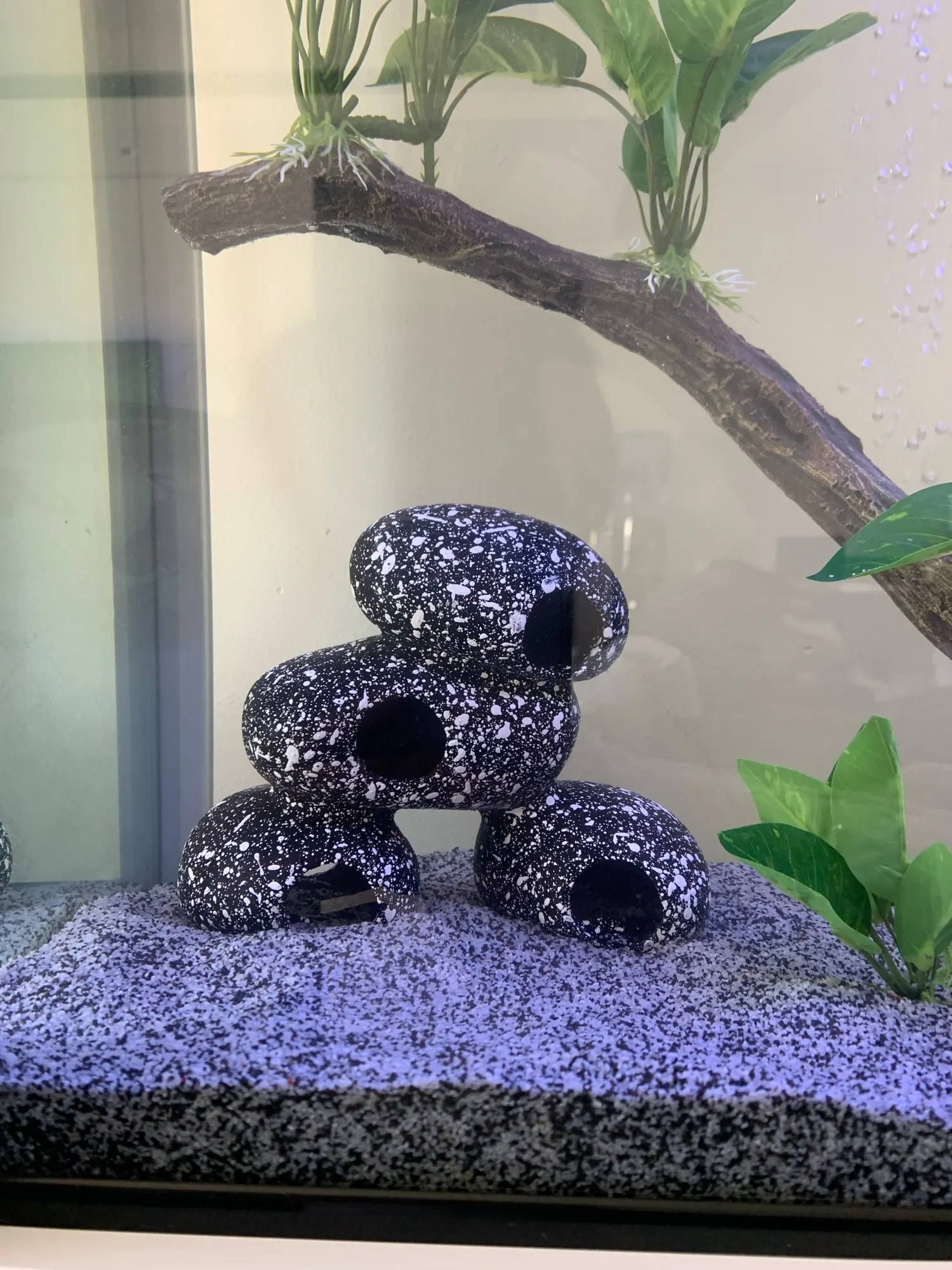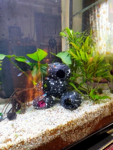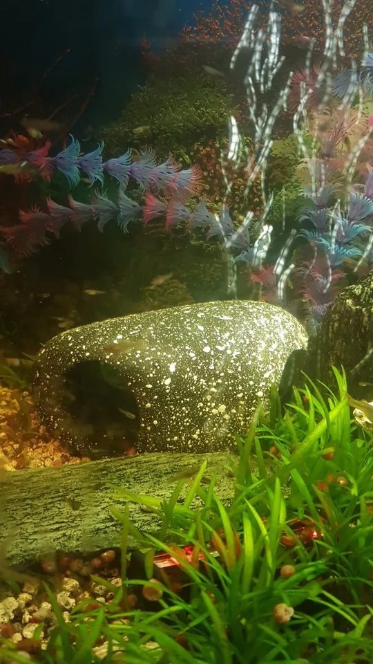 Боже какая прелесть ! Ну в 1000 раз лучше чем на фото ! Сейчас обработаю и поставлю в акву ! Размер реально большой ! Для неонов ,гуппи самое то ! На днях придут креветки посмотрим как им домик ))) Берите не пожалеете ! Легкий ,невесомый ! Доставка 11 дней в Испанию .