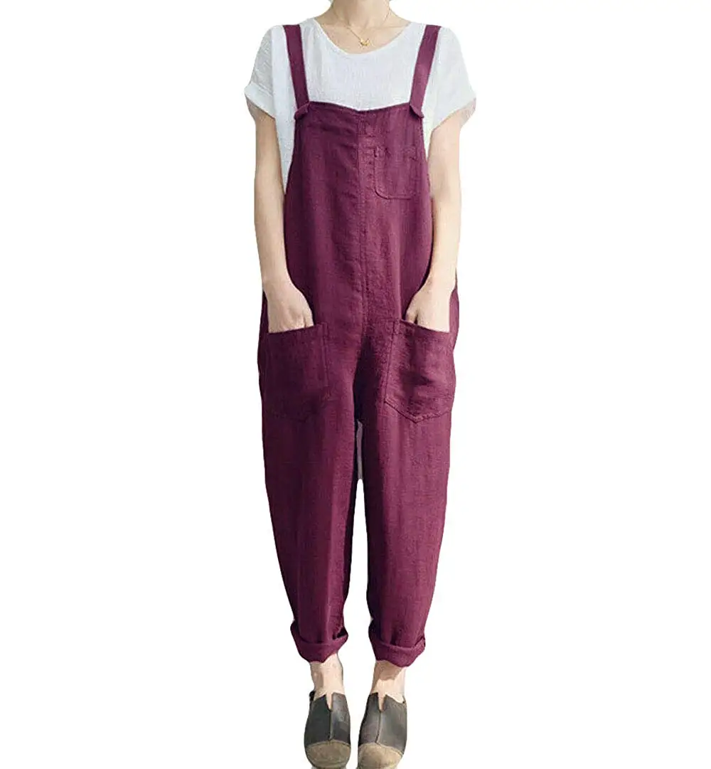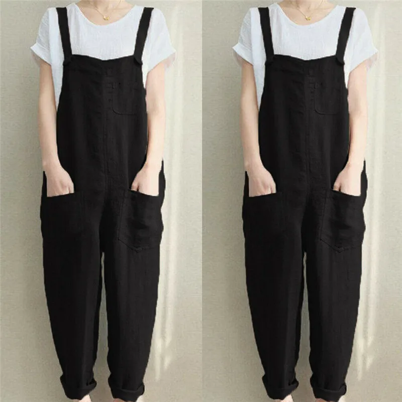 Женские повседневные однотонные комбинезоны без рукавов из хлопка и льна; Свободные вечерние длинные шаровары; Спецодежда с карманами; Летний комбинезон