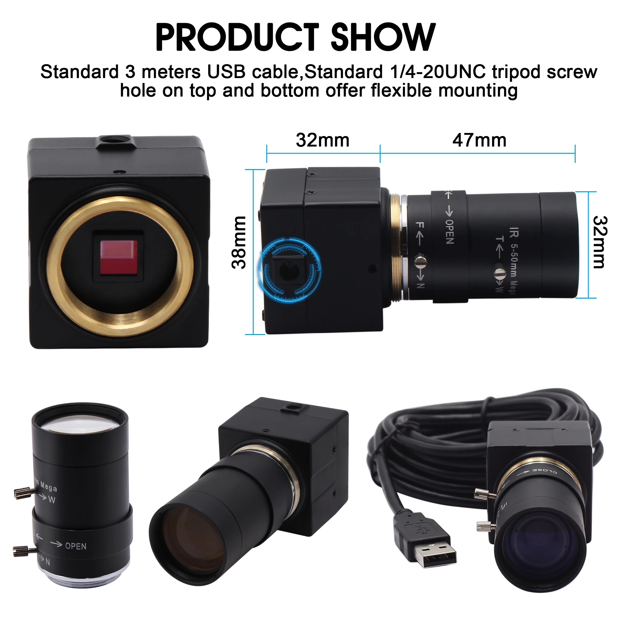 1) 1 шт. 4K usb камера с 4/6/8 мм объектив ручной фокусировки, 2,8-12/5-50/6-60 мм объектив Ручной варифокус опционально