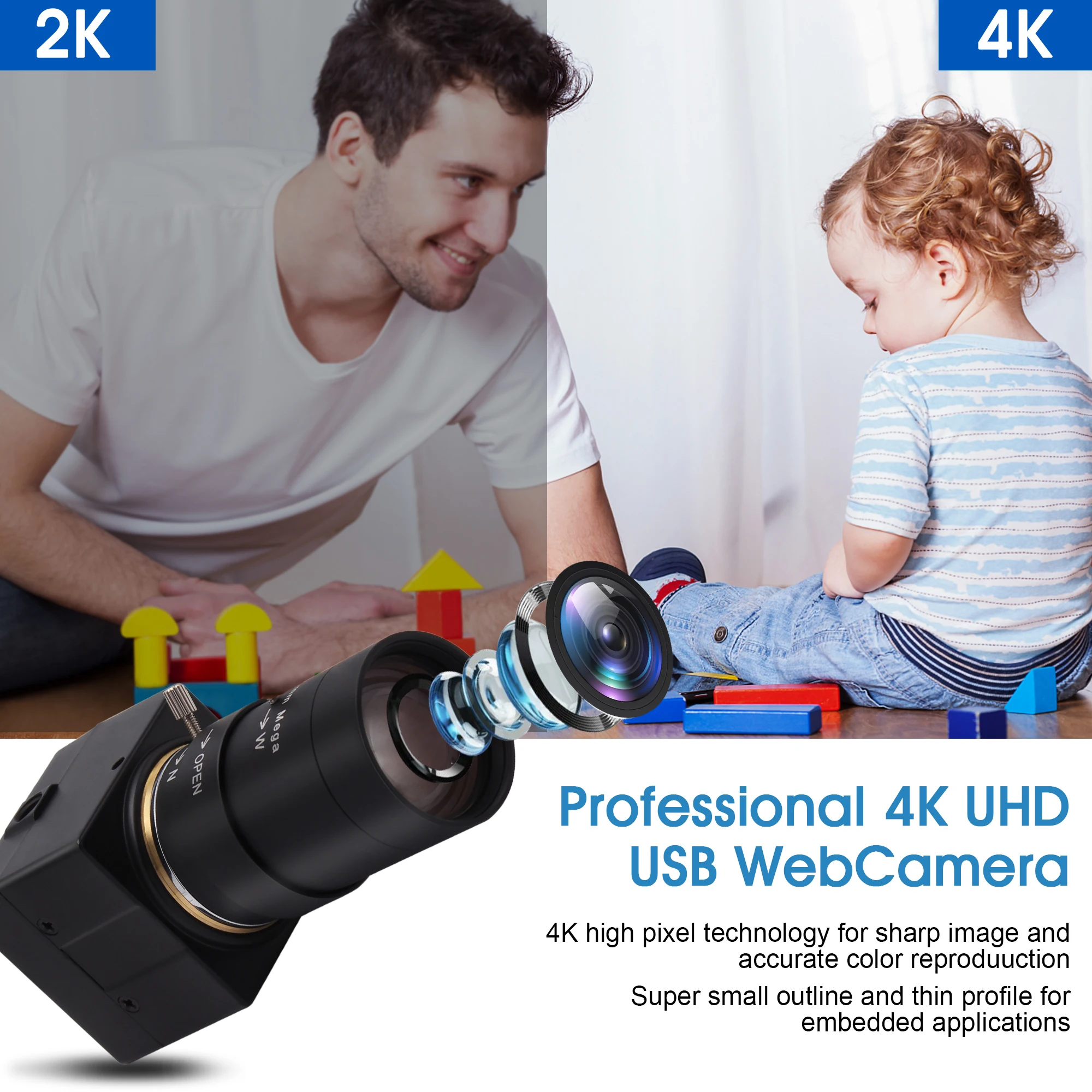 1) веб-камера 4K с высоким разрешением, максимальное разрешение 3840x2160