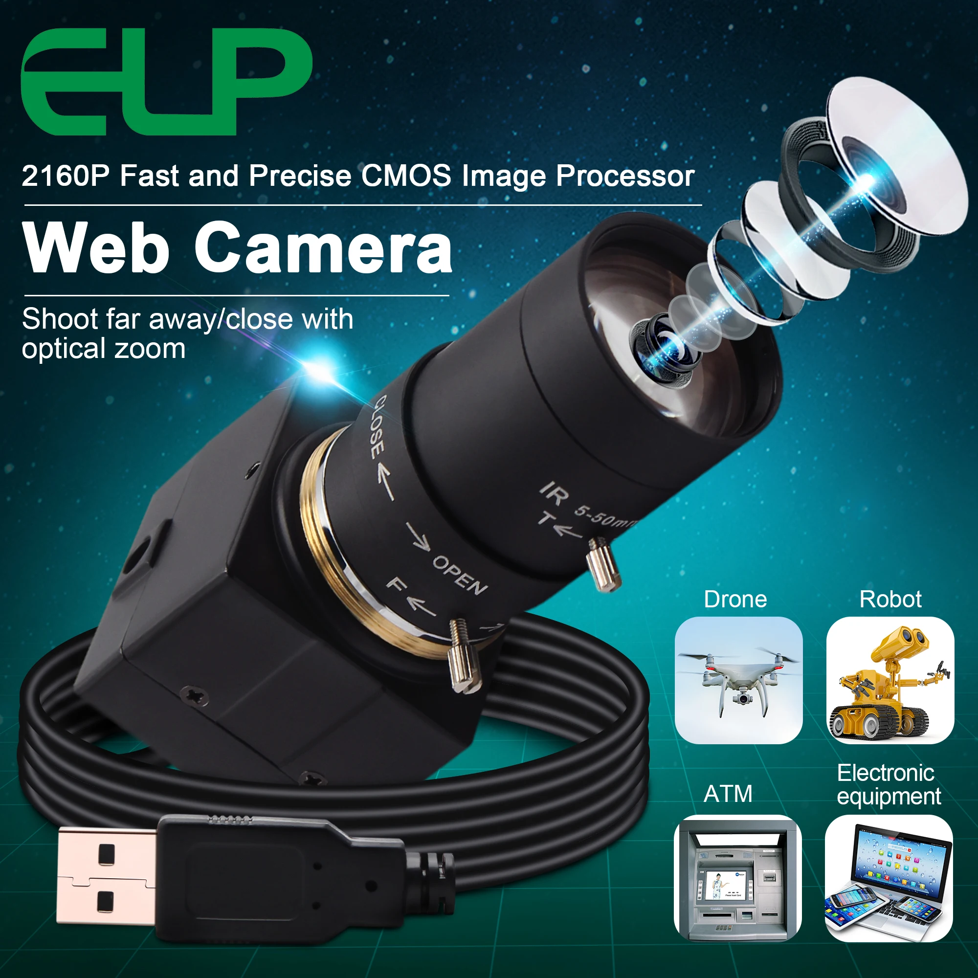 4K usb веб-камера with5-50mm объектив с переменным фокусом