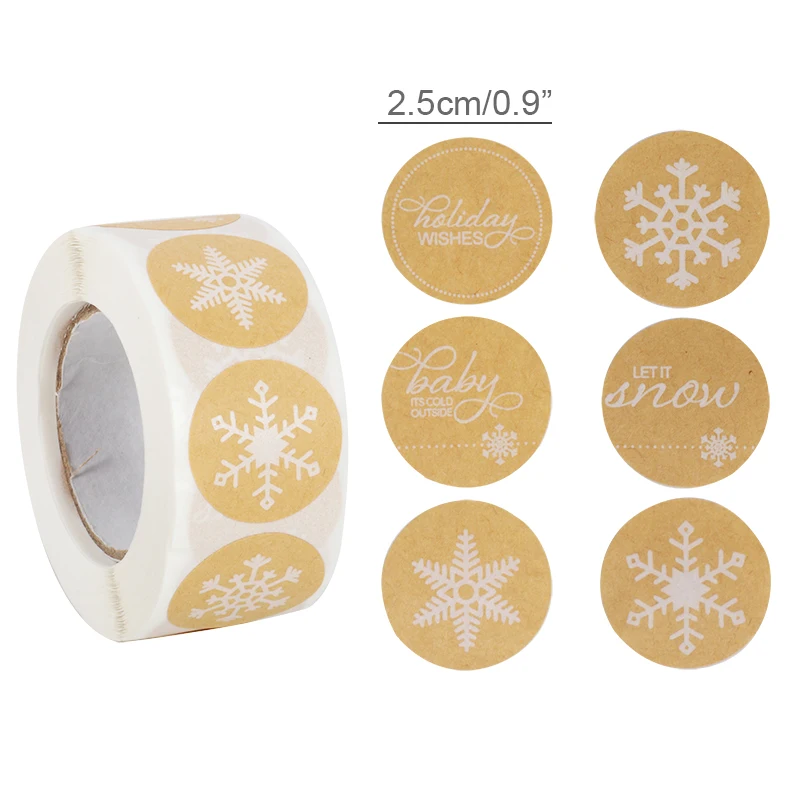 Наклейки из крафтовой бумаги в виде снежинок, Рождество 500, упаков...