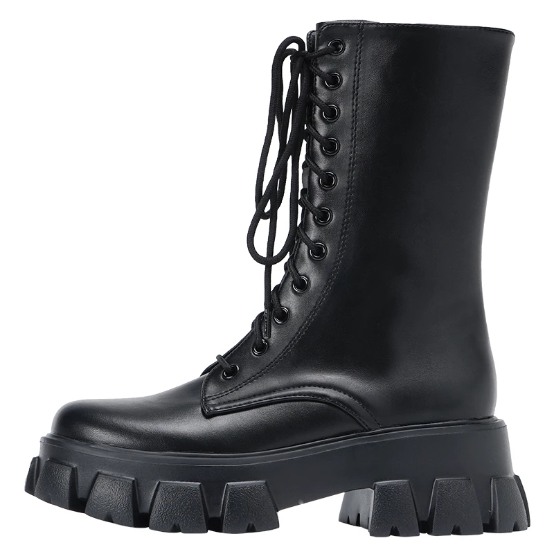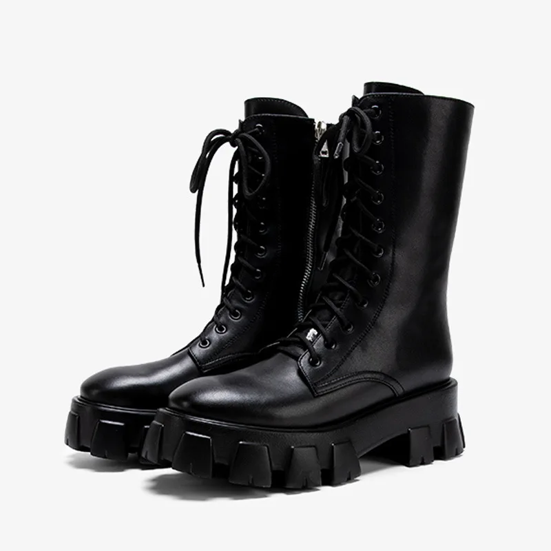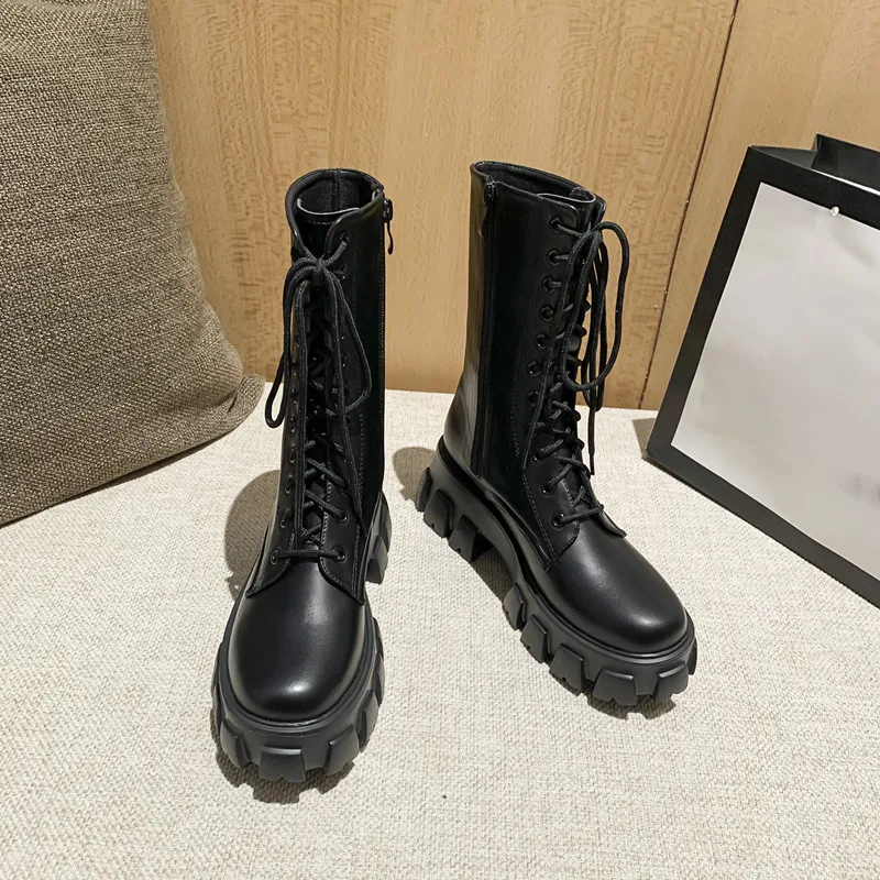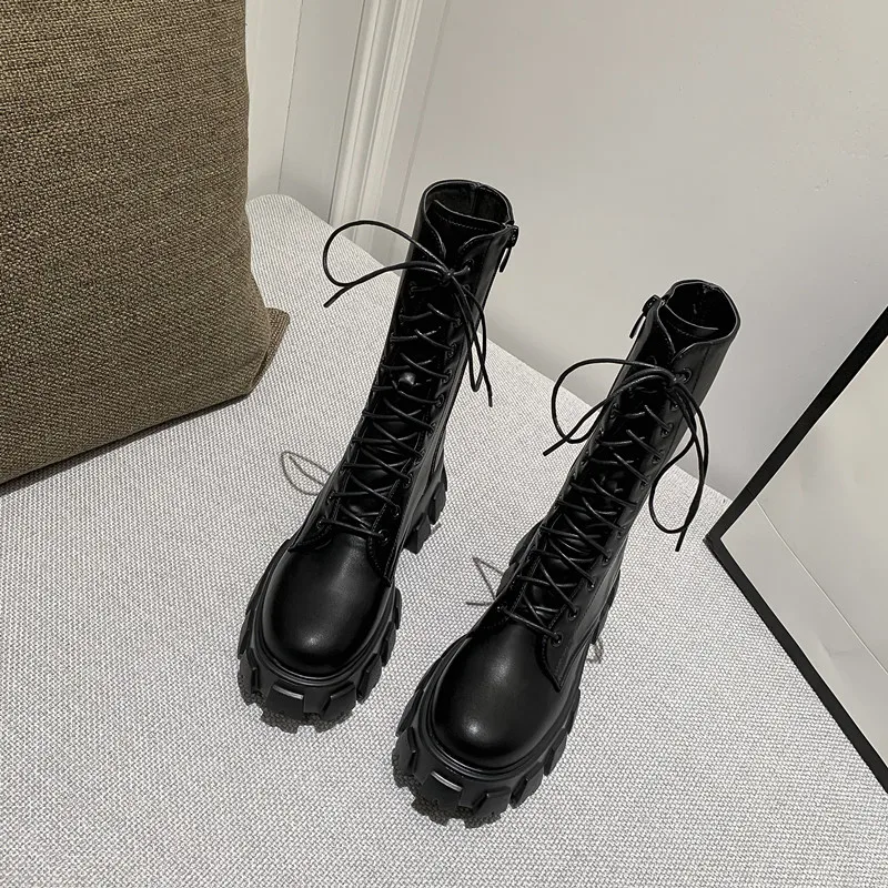 2022 Натуральные Кожаные Ботинки Martin женские сапоги до середины икры с круглым носком мотоциклетные сапоги на толстой подошве средней высоты со шнуровкой