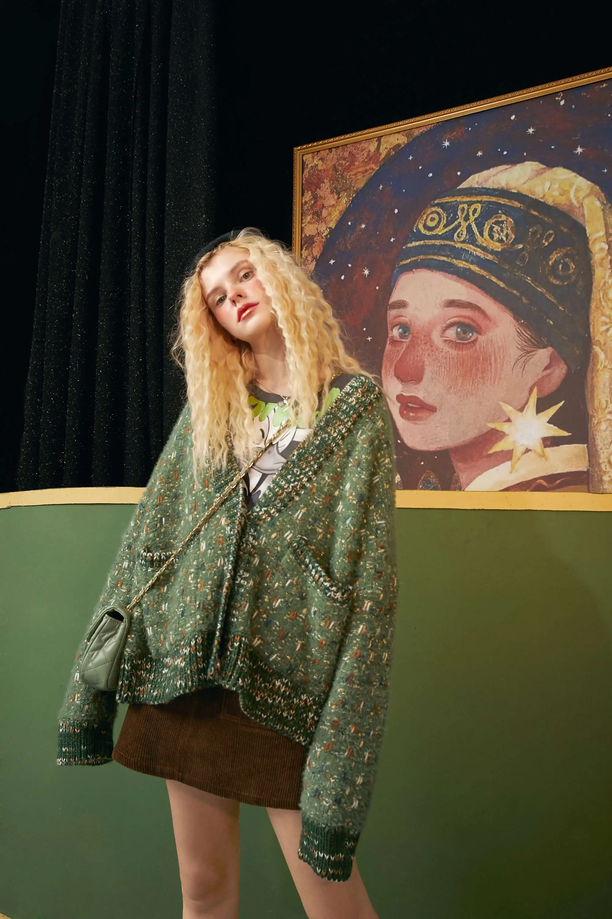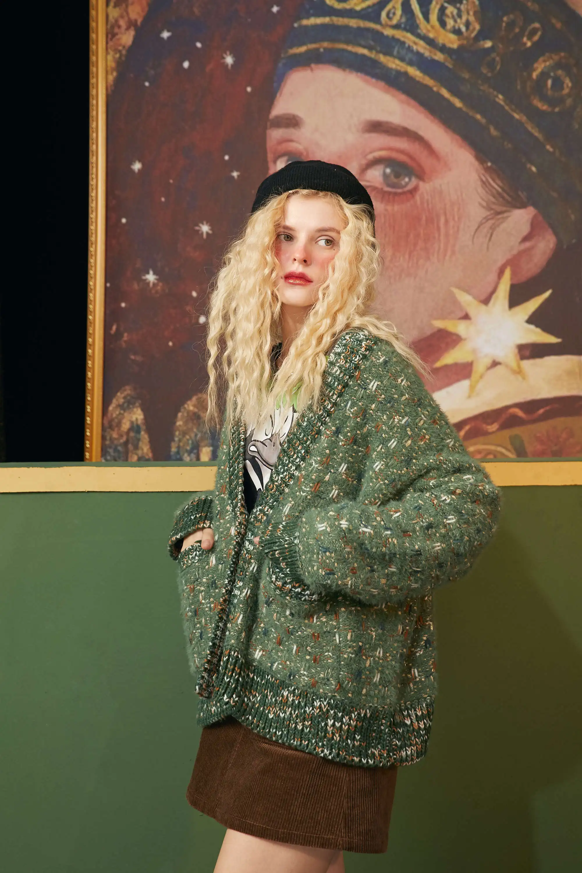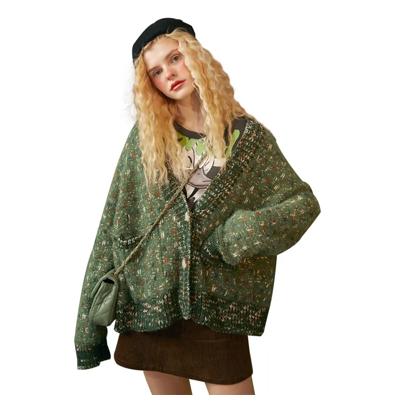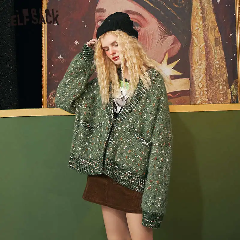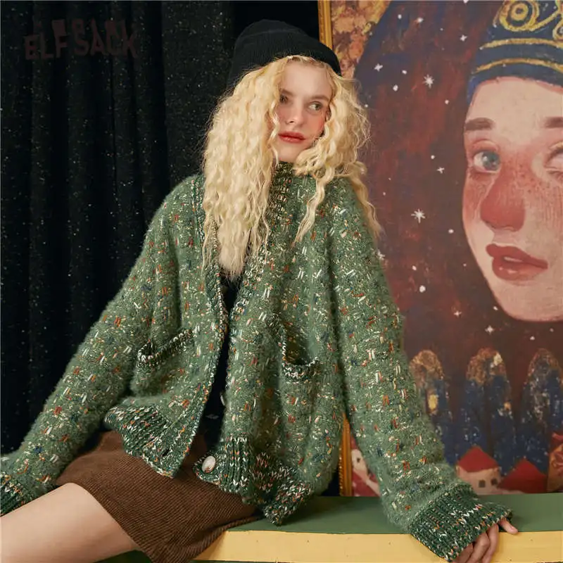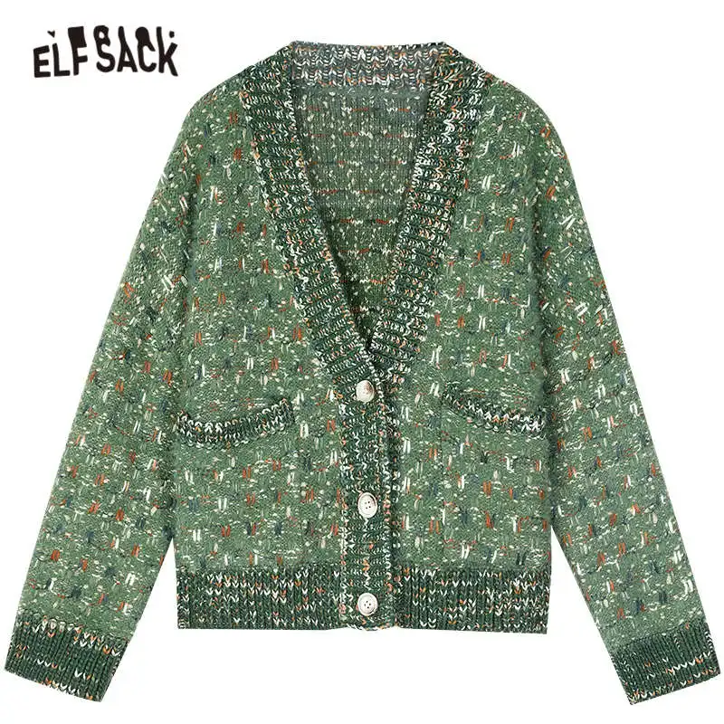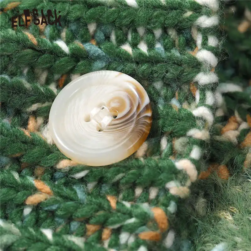 Женский трикотажный кардиган ELFSACK, зеленый Яркий шелковый кардиган на пуговицах, Осенний винтажный топ в Корейском стиле, модель 2020