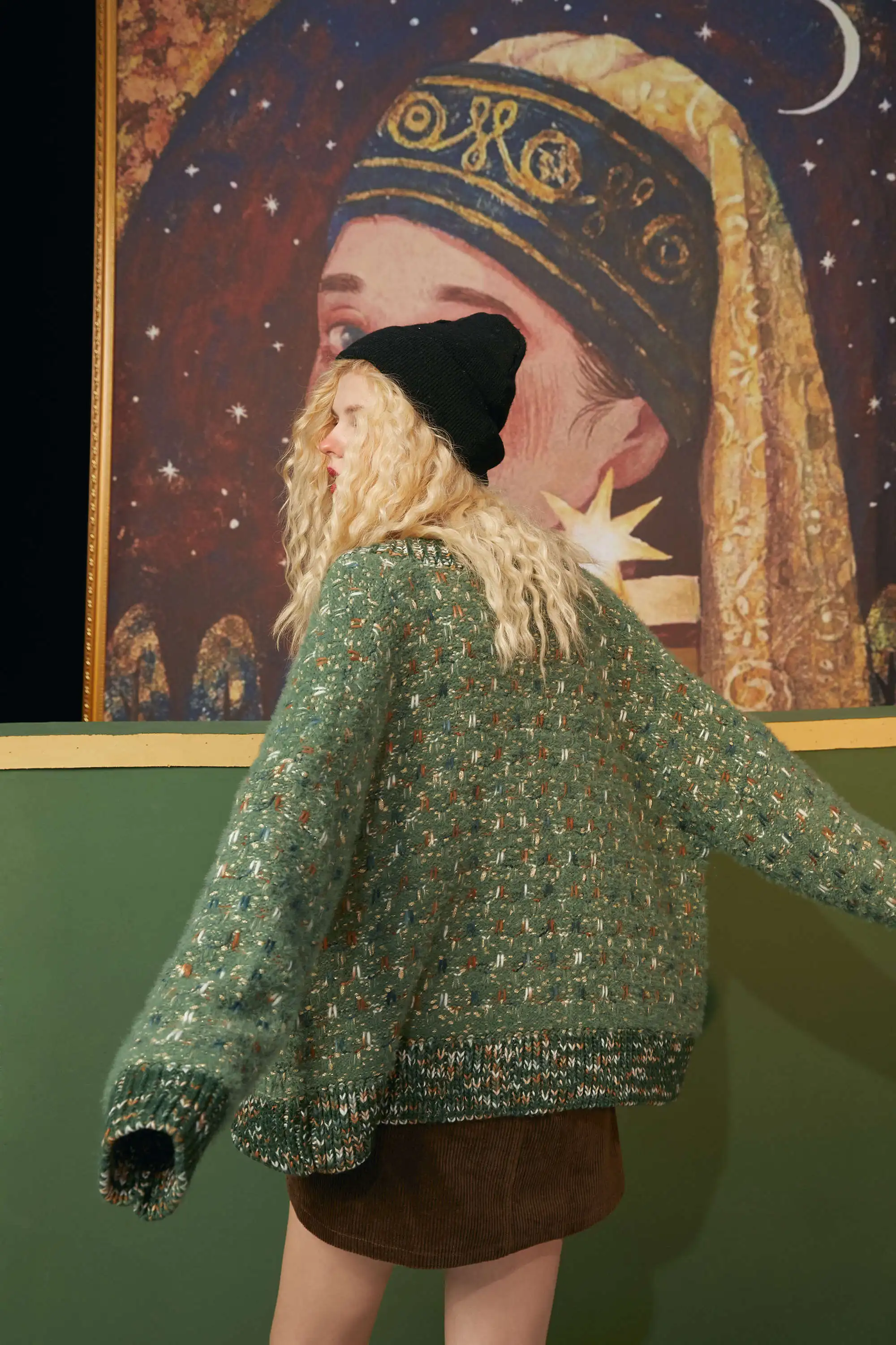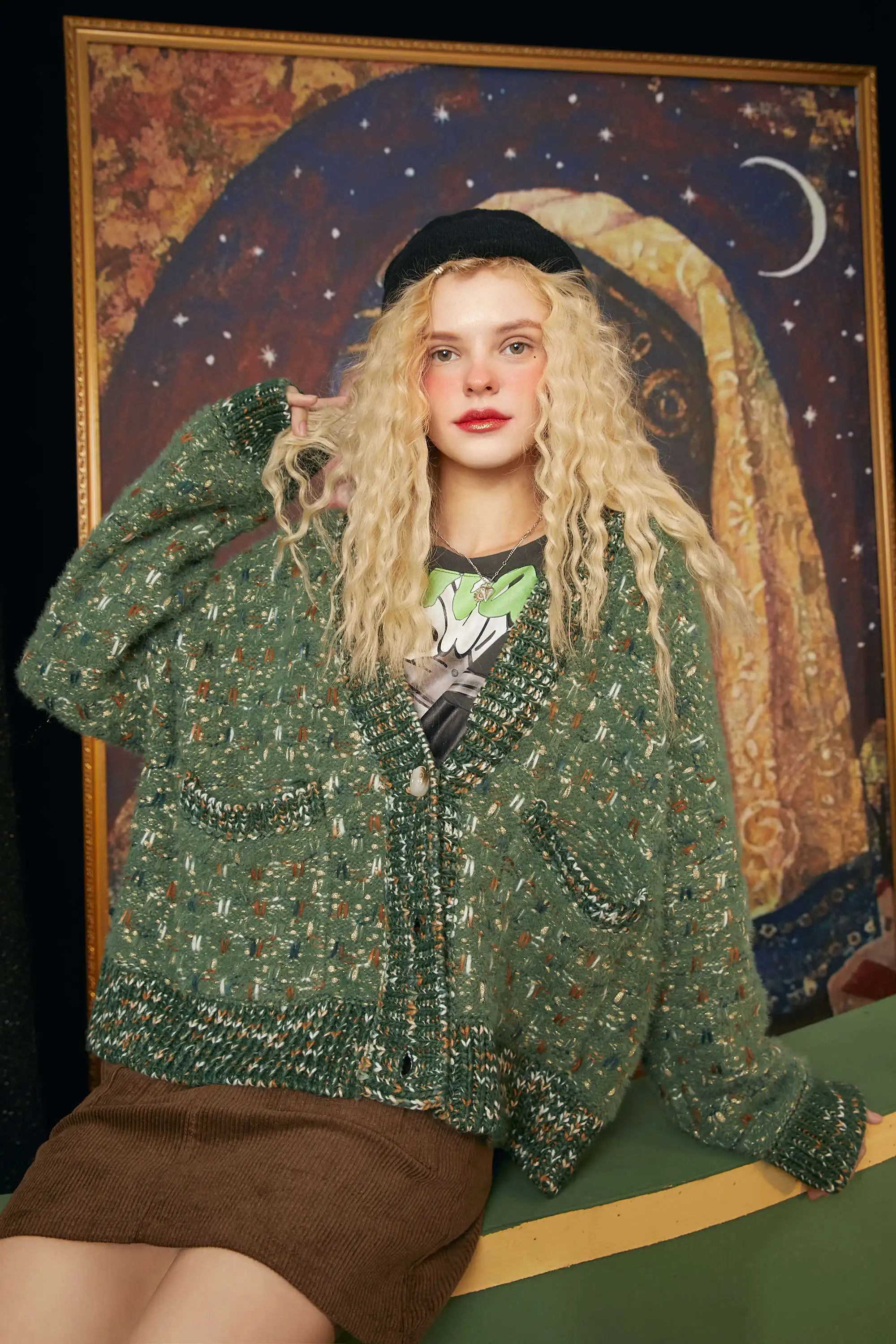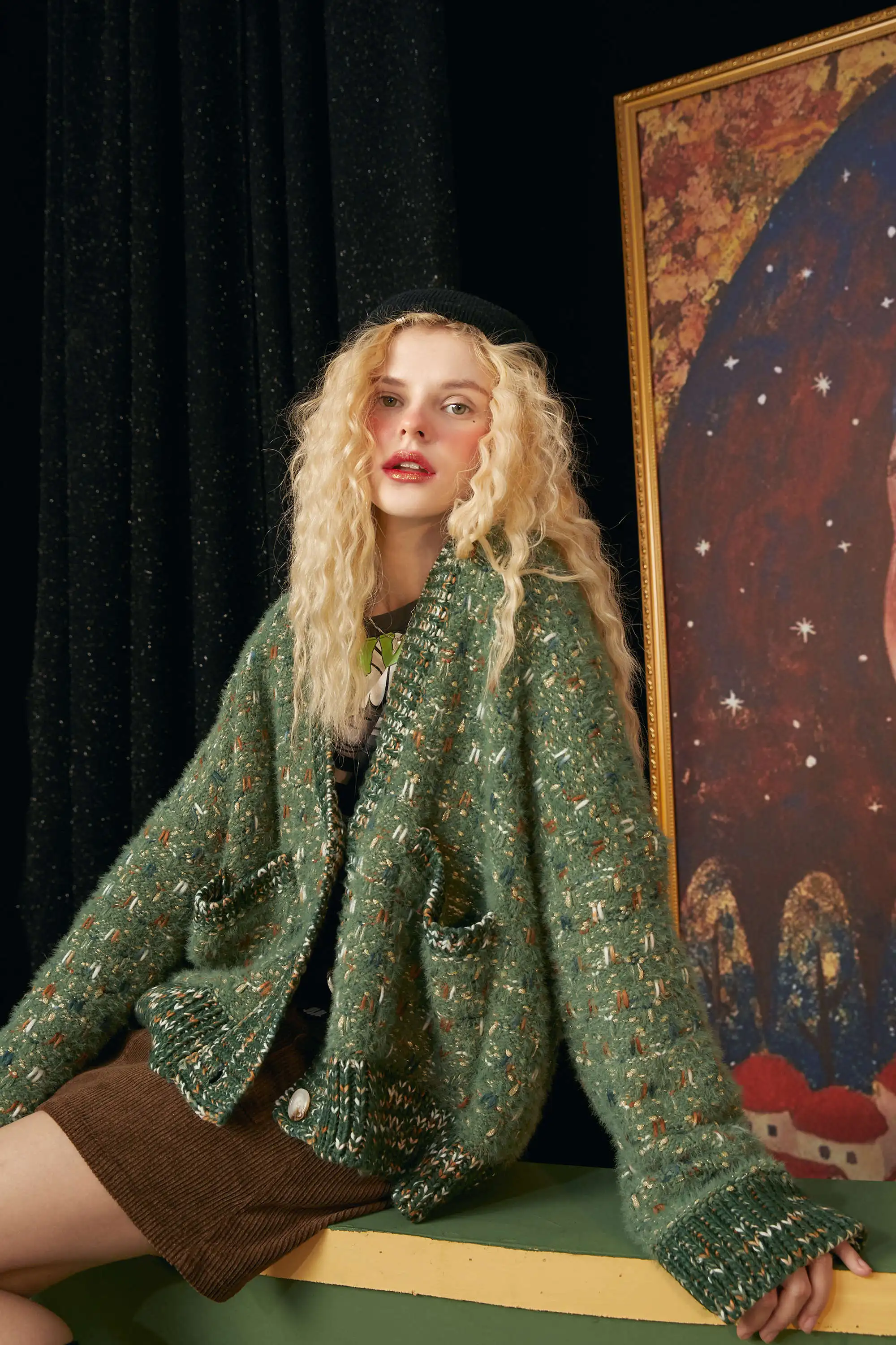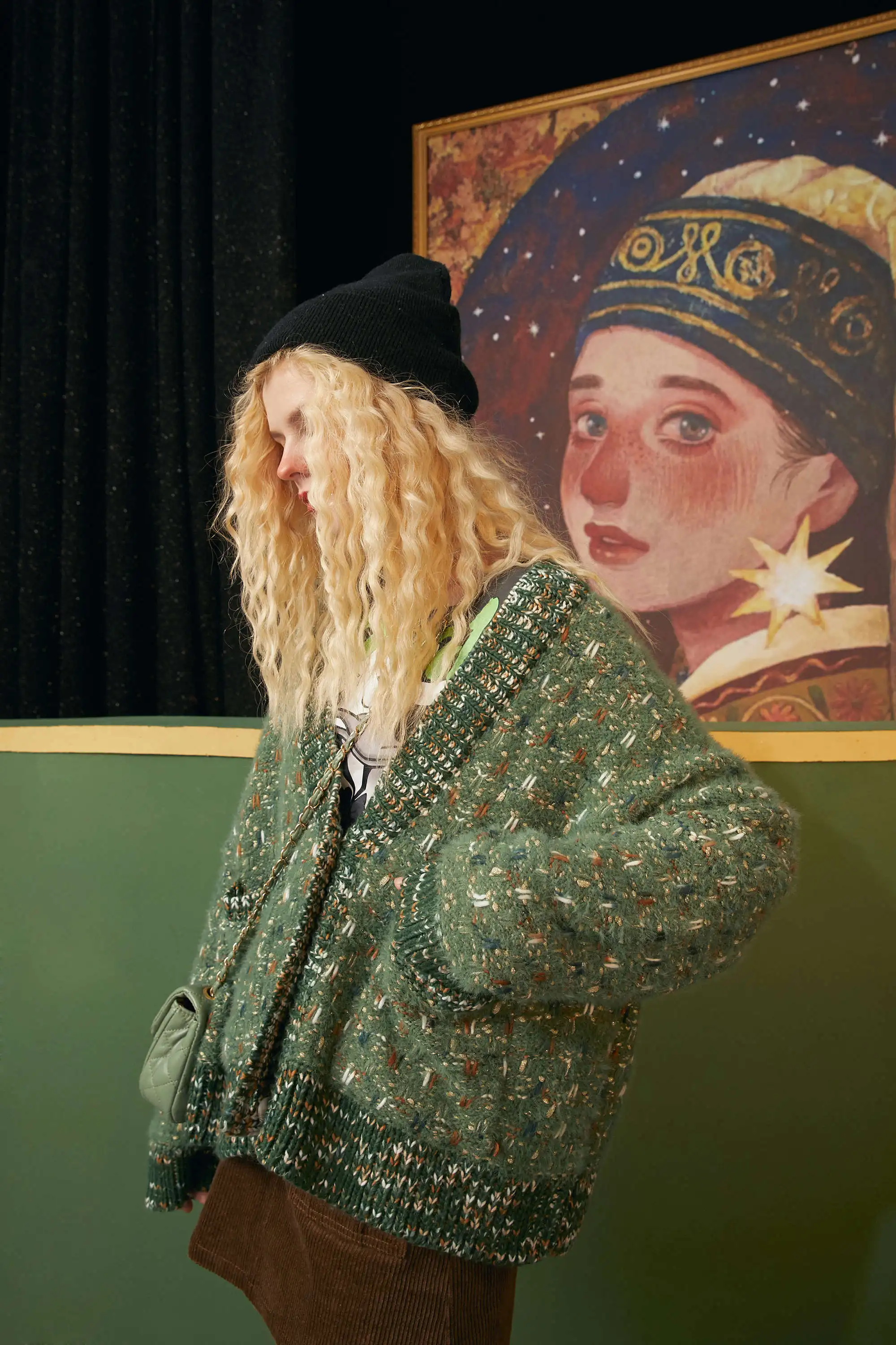Женский трикотажный кардиган ELFSACK, зеленый Яркий шелковый кардиган на пуговицах, Осенний винтажный топ в Корейском стиле, модель 2020
