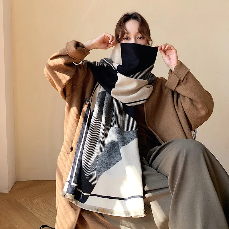 Женский кашемировый шарф, зимний теплый шарф из пашмины, теплое шерстяное одеяло, 2019