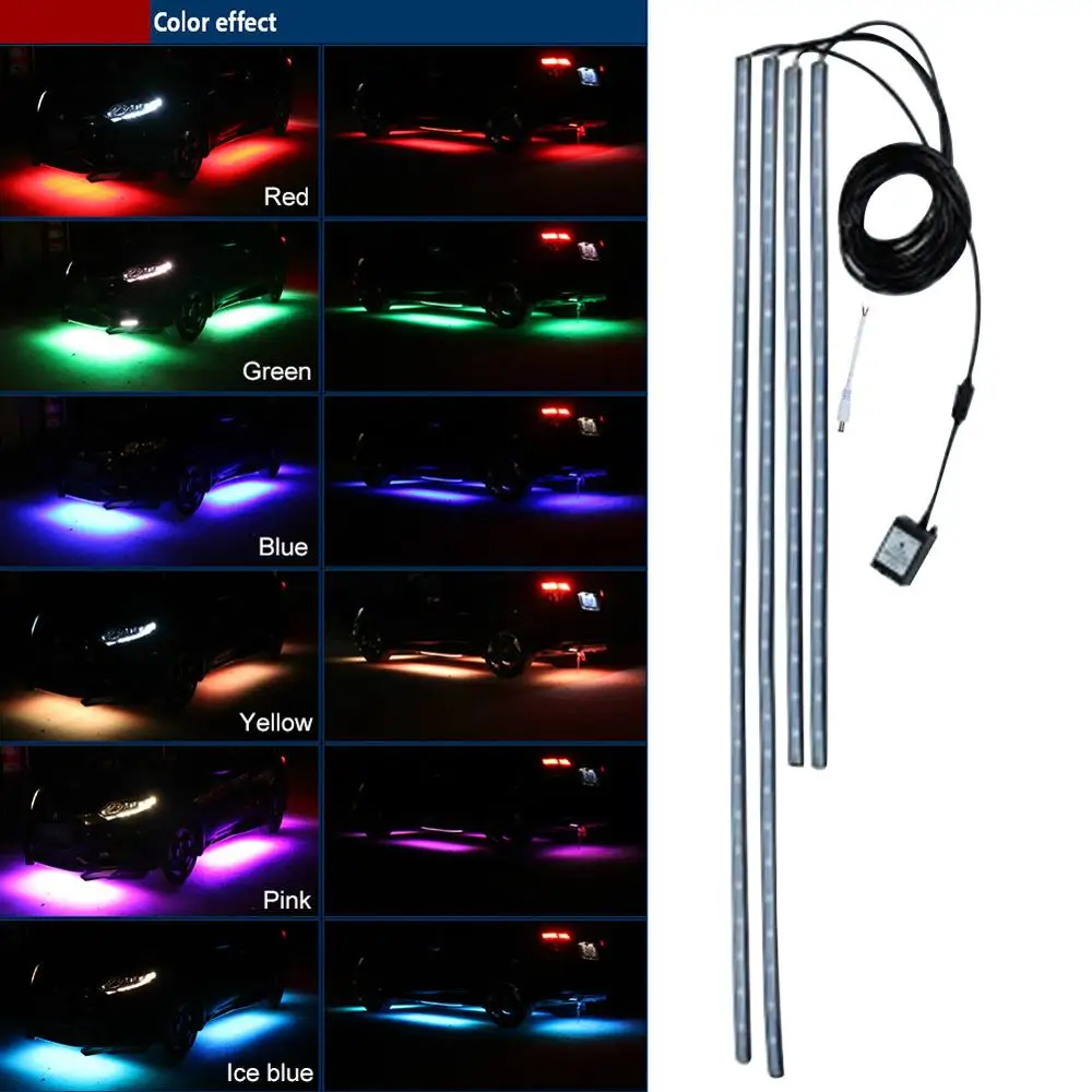 4 шт. 12 В IP65 Bluetooth управление через приложение RGB Светодиодная лента под автомобиль 60 90 см трубка подсветка система неосветильник