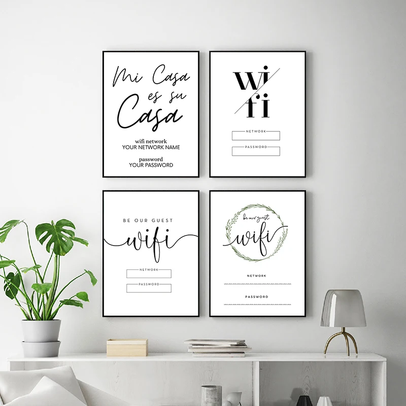 Современный минималистичный WiFi пароль знак холст художественные принты на заказ WiFi сетевой знак черно-белые настенные картинки Декор для гостиной