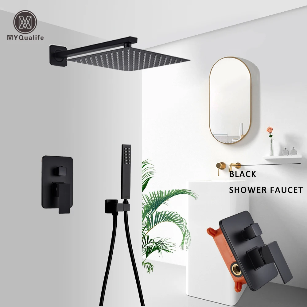 Матовый черный настенный смеситель для душа в ванную комнату, смешанный кран для горячей и холодной воды, Встраиваемый Клапан Управления