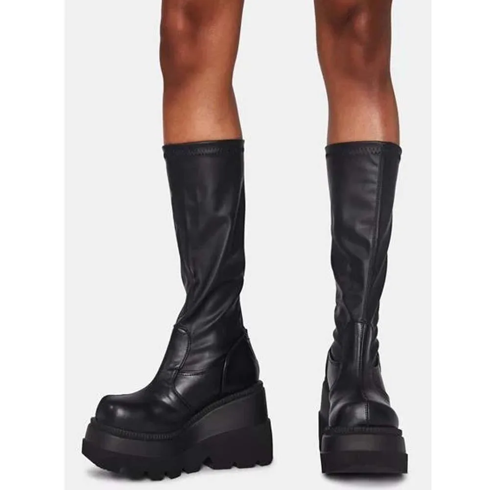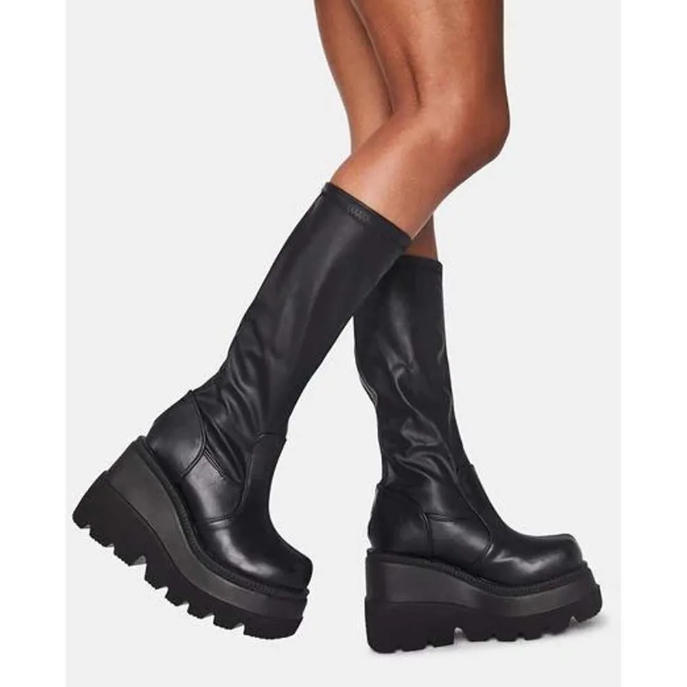 DORATASIAБрендовые женские осенние ботинки на платформе; Роскошные ботинки до середины икры на толстой подошве; Модная женская обувь на молнии