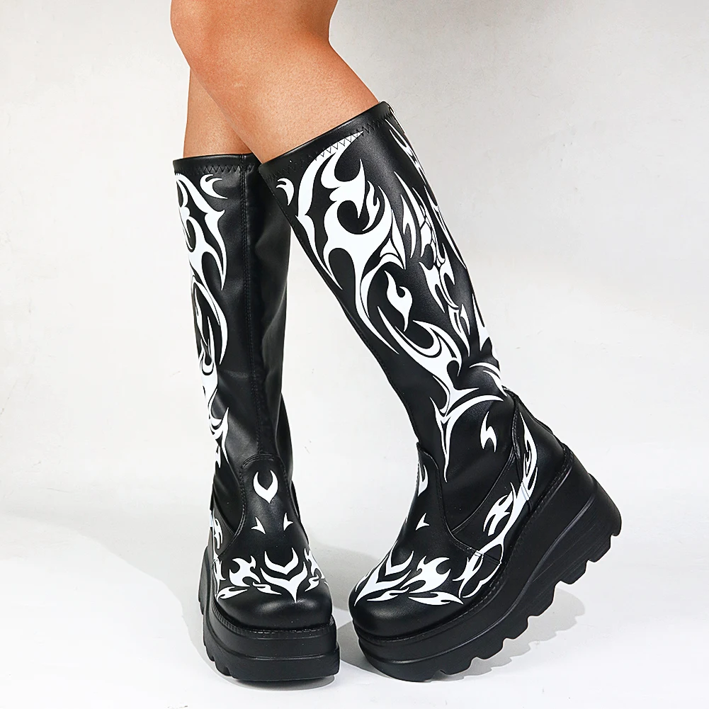 Женские ботинки на платформе, высокие ботинки на танкетке, в готиче...