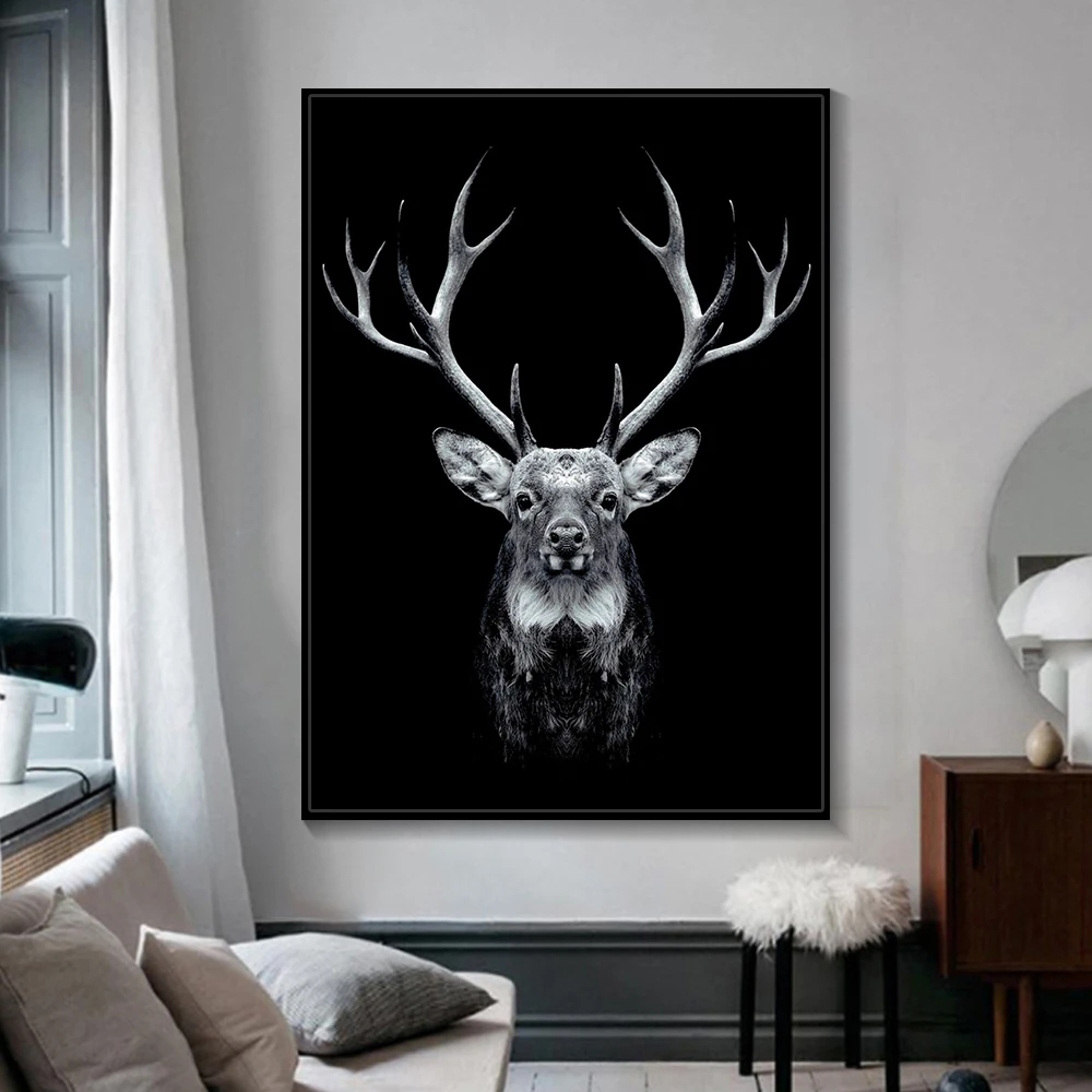 Картина на холсте, с изображением оленя, черно-белого цвета, постеры и принты фотографии животных на стену для гостиной, украшение для дома, без рамки