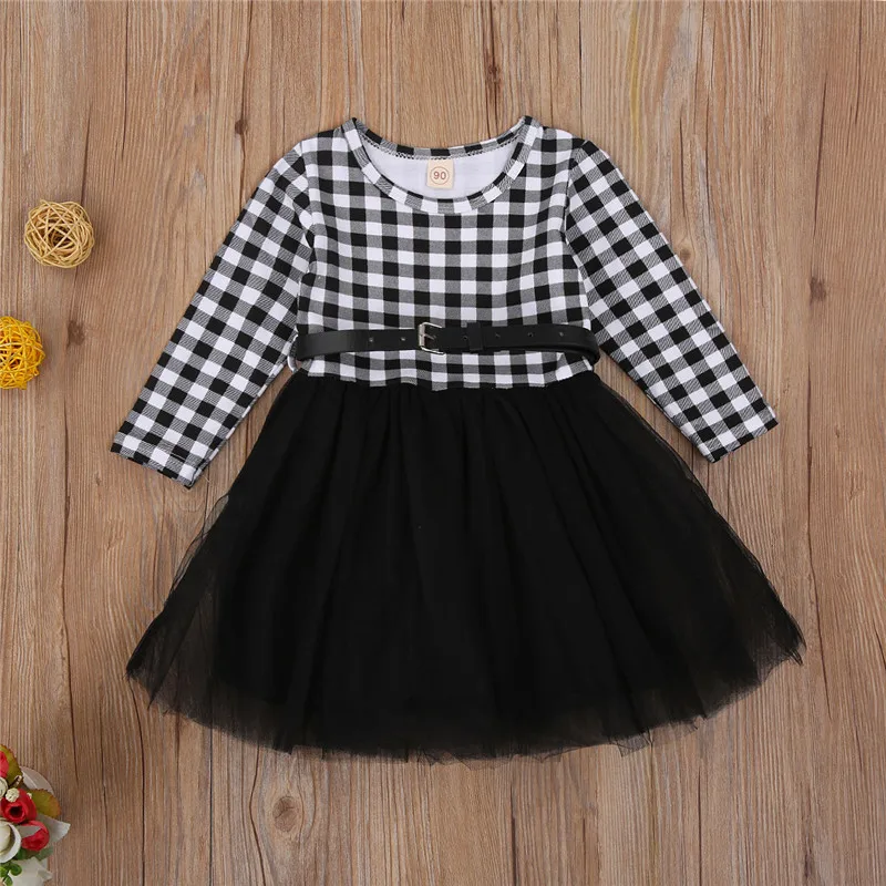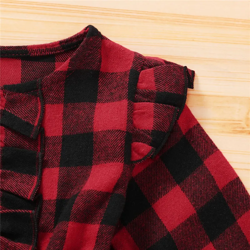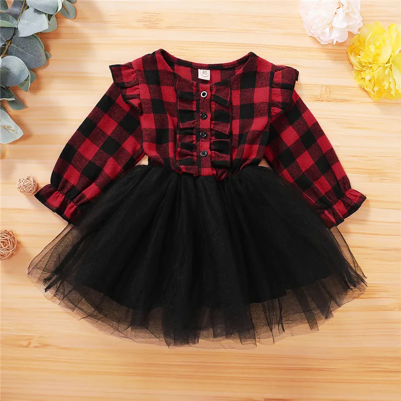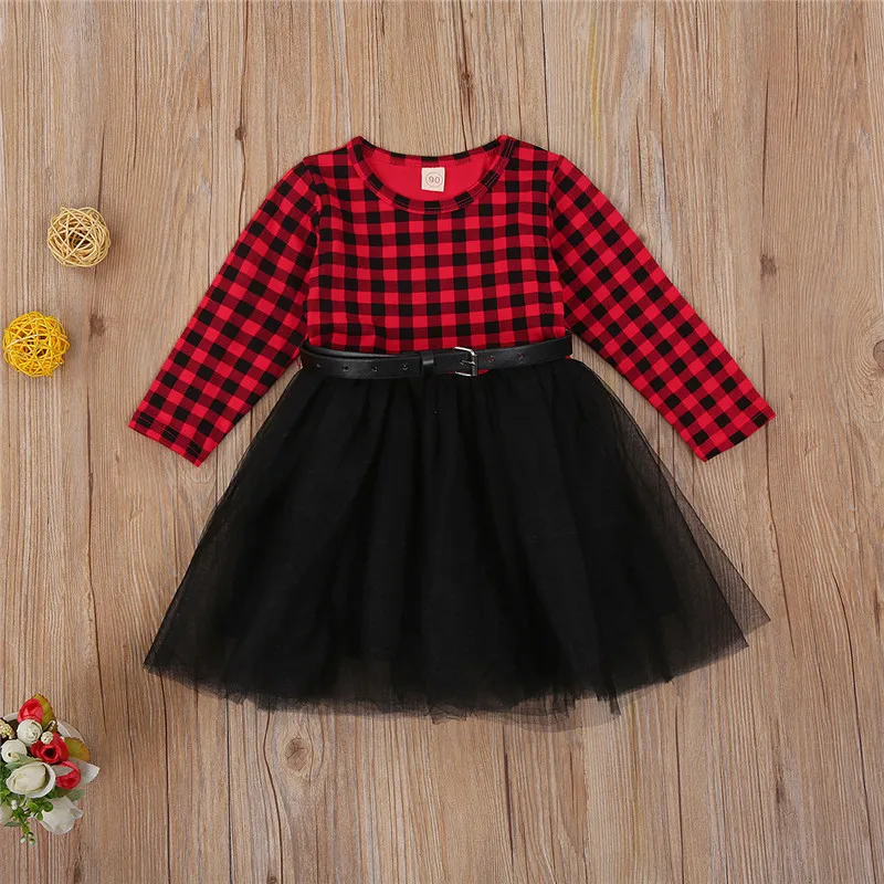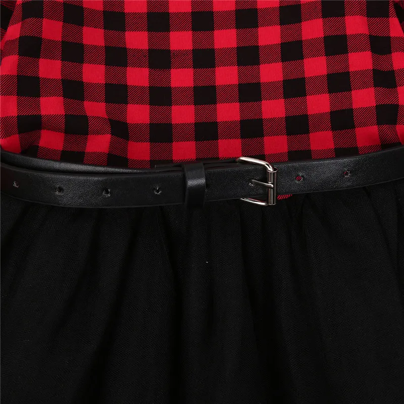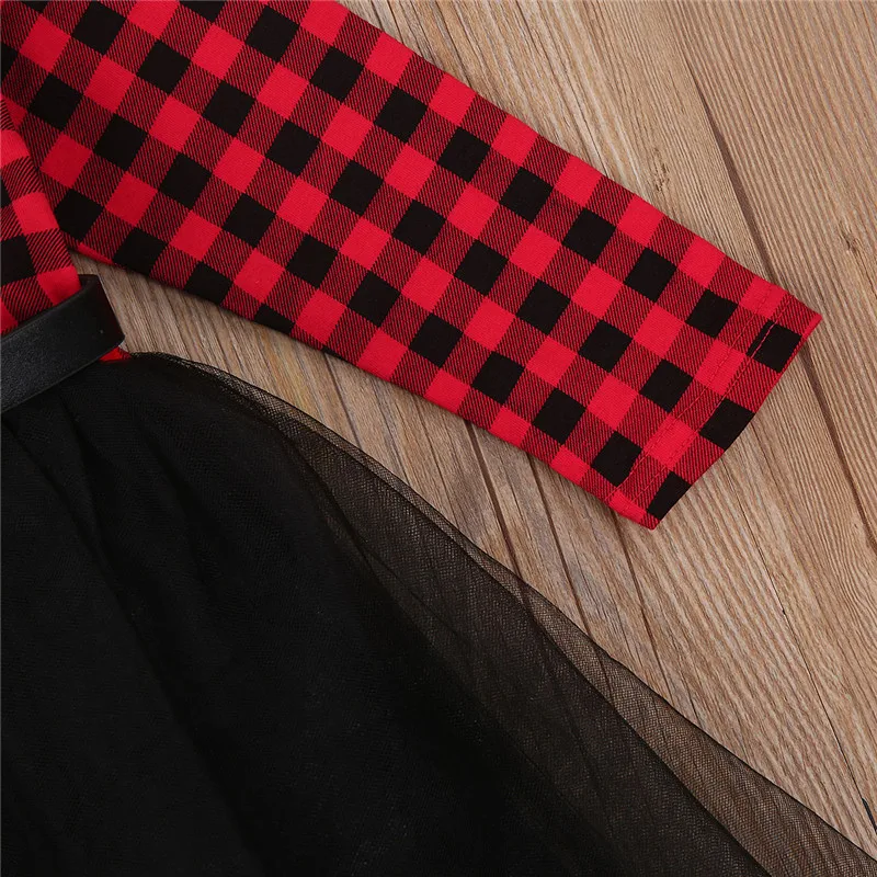 Кружевное платье для девочек, повседневное, красное, в клетку, 2021