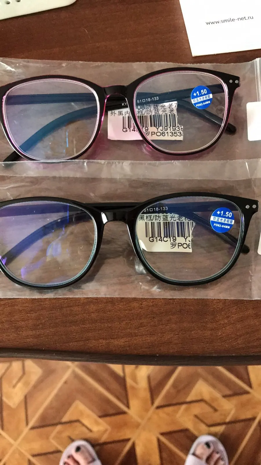 Доставка две недели до МО. Очки, конечно, хлипенькие, но мне они не для постоянной носки. Надела на пробу, глаза вроде не болят, диоптрии совпадают.