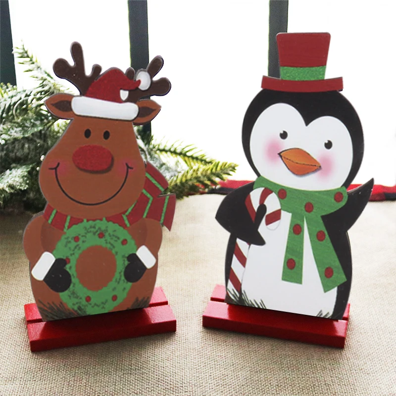 Рождественские украшения, настольные деревянные поделки, Санта-Клау...