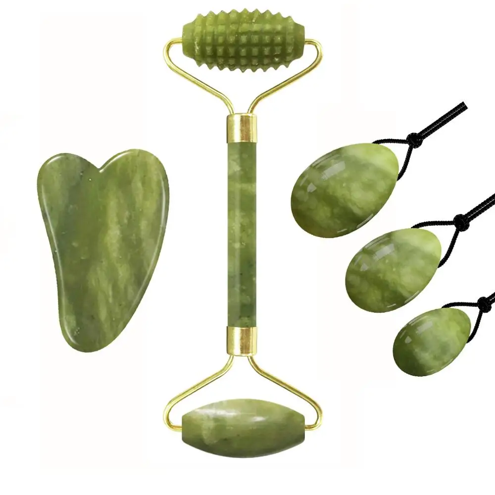 Натуральный нефритовый ролик гуаша скребок Йони яйцо зеленый камень массажер для лица нефритовые яйца Кегель тренажер гуашь скребок массажный ролик