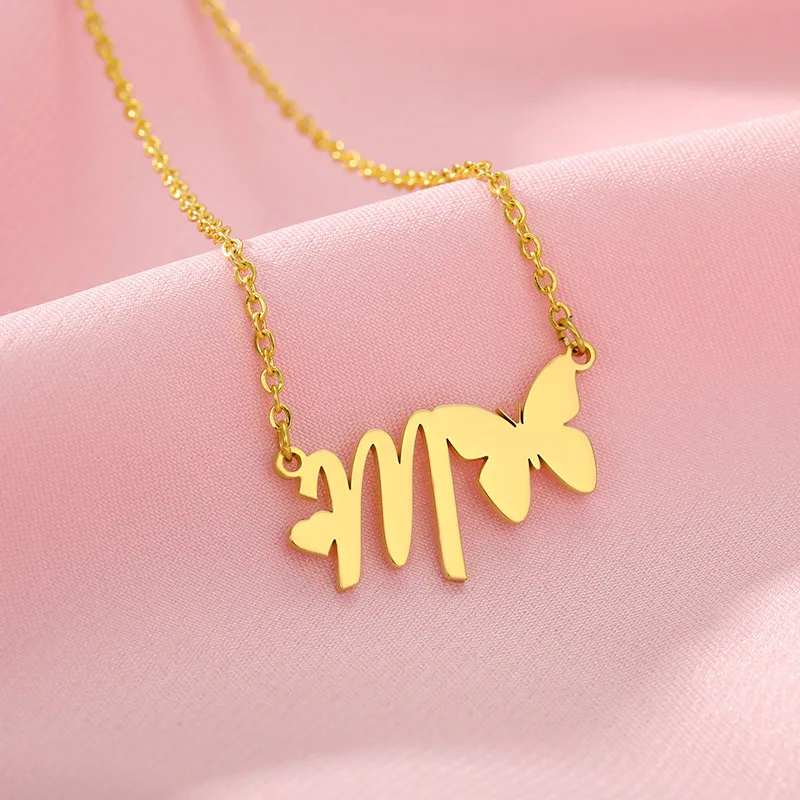 Ожерелье с милыми инициалами и бабочками для женщин, колье из нержа...