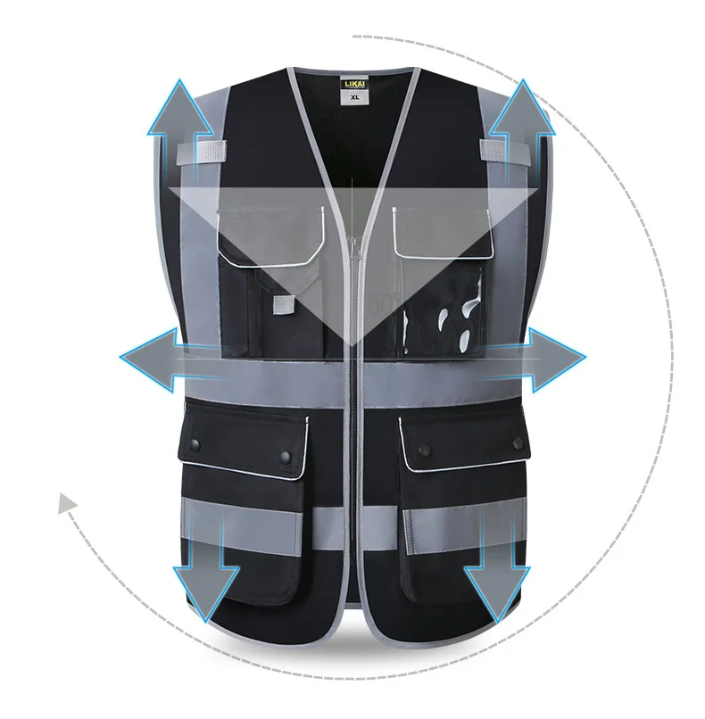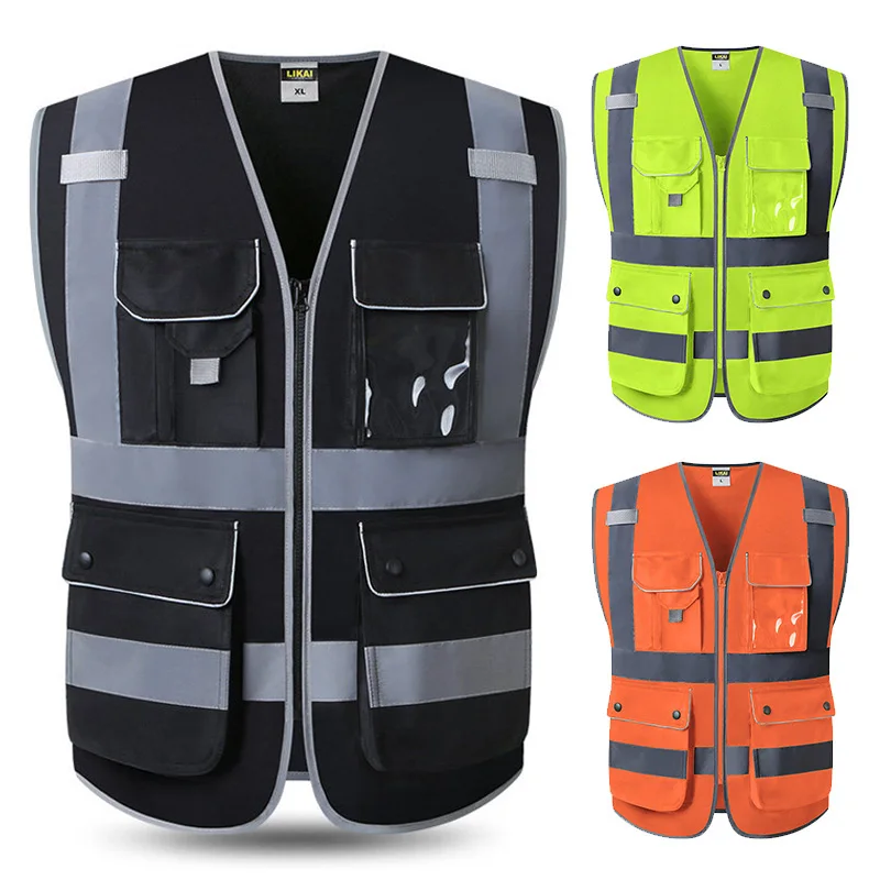 Защитный светоотражающий жилет, строительный жилет, защитная одежда, жилет для работы с несколькими карманами, черный жилет