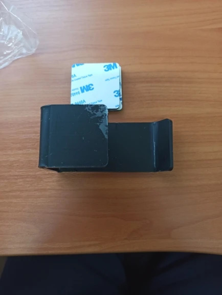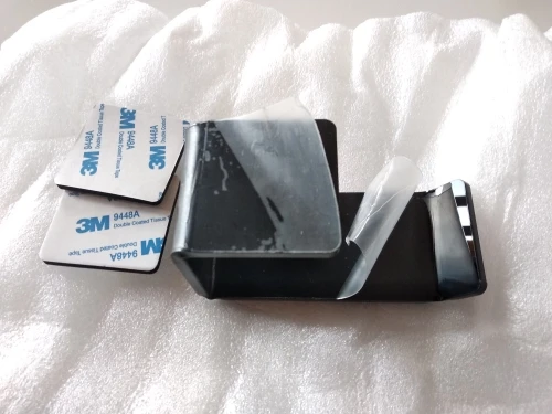 Добротная подставка, двухсторонний скотч довольно толстый (около 2 мм толщиной) глянцевый пластик поклеен для защиты плёнкой, мне приехал поцарапаный глубокая царапина на сгибе, хотя упаковка не повреждённая. Пришло быстро, с продавцом не общался.