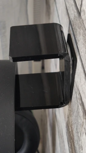 Это пластиковый черный глянцевый Держатель для гарнитуры, хорошо держится