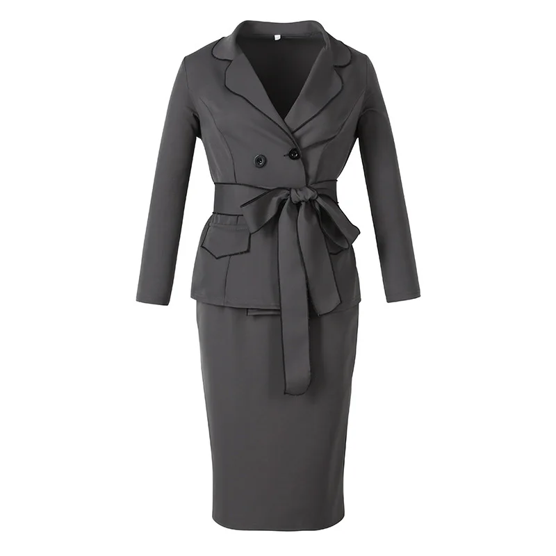 Осенний модный костюм с юбкой женский двубортный с отложным воротником однотонный на шнуровке Повседневная офисная юбка винтажный деловой пикантный женский костюм
