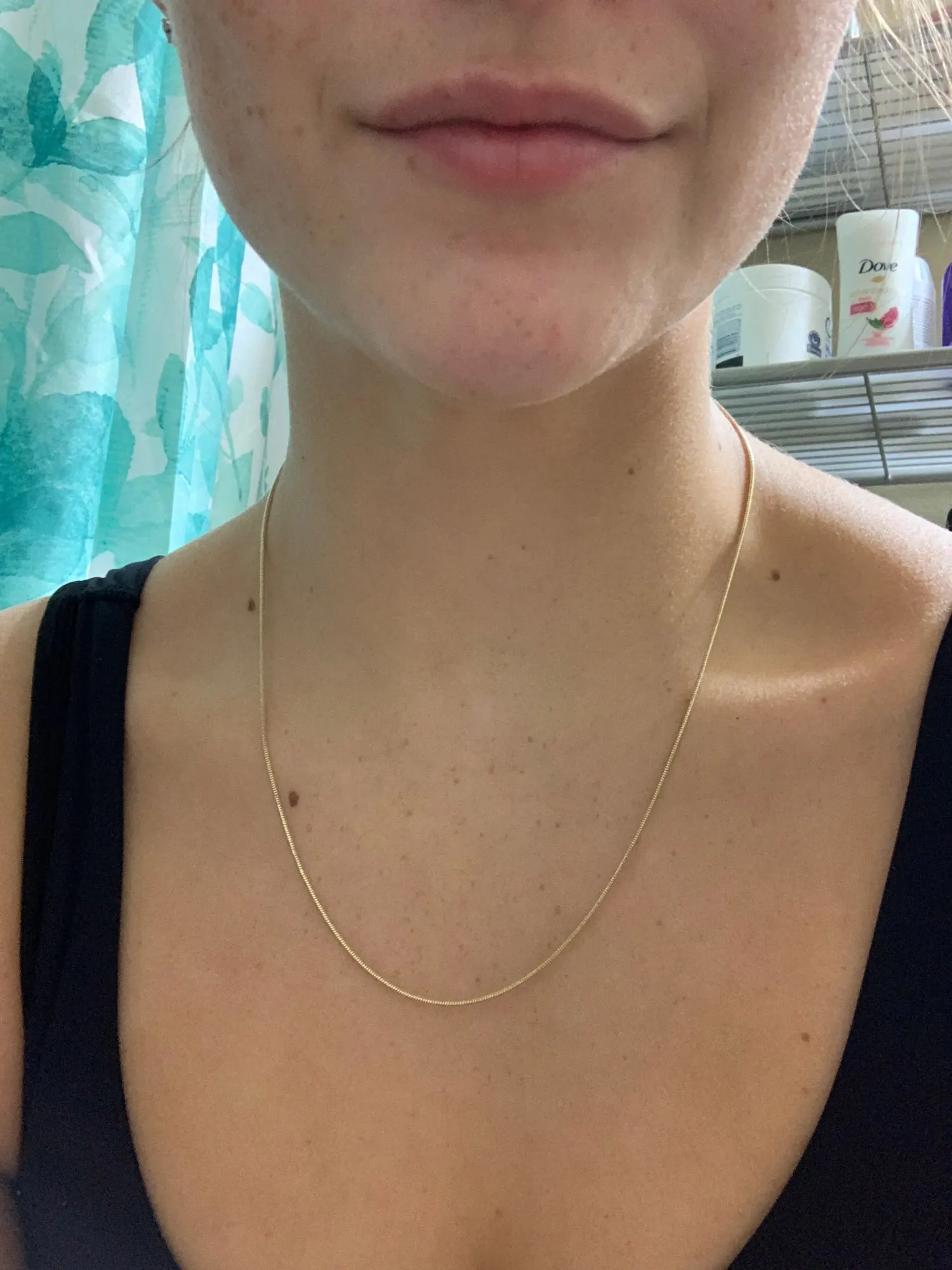 Мне нравится стиль и длина, но цепочка выглядит более желтой, чем золото и кажется дешевой
