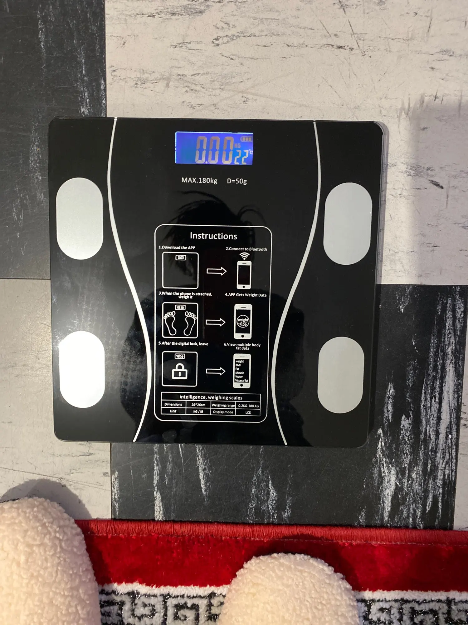 Вес отличный, точный и точно к описанию, выставленному продавцом, мне очень понравилось! Очень четкая маркировка веса и очень простая, приложение для установки поставляется на нескольких языках, оно разбивает все в соответствии с вашими зарегистрированными измерениями, оно пришло очень быстро! Через 2 дня! Очень хорошо упакован, приносит инструкции по установке приложения и приносит подарок метрическую ленту