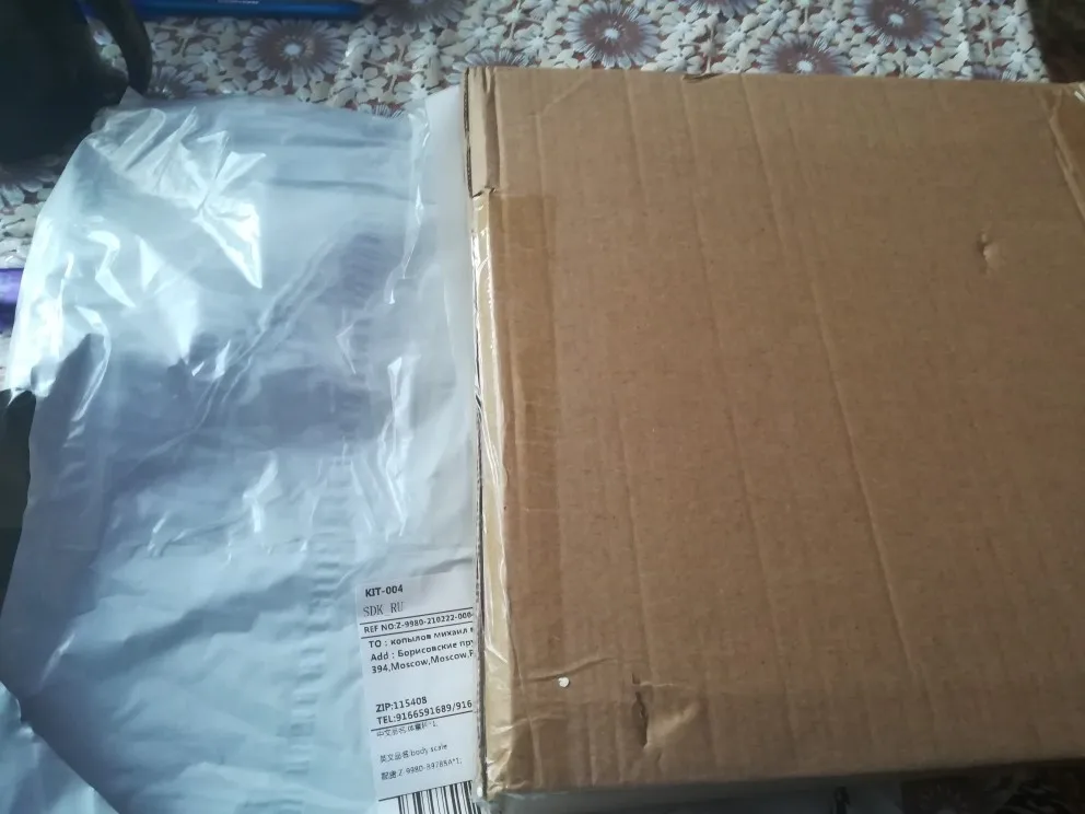 Заказ пришёл на 3 день.Доставка курьером до квартиры,что очень удобно. Батарейки в комплекте,подарок лента сантиметровая. Приложение скачала, всё работает. Коробка пробита в нескольких местах,но весы целые. Спасибо продавцу.