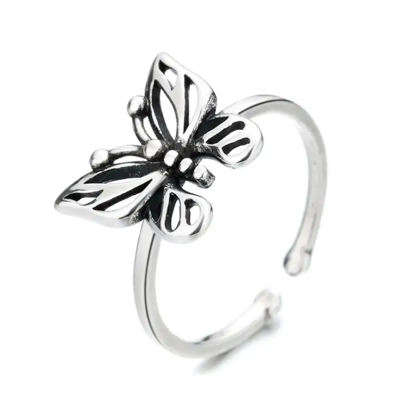 Винтажная готика, Харадзюку, эстетическая пустотелая Серебряная бабочка кольца для мужчин и женщин, ювелирные изделия для панков, оптовая продажа