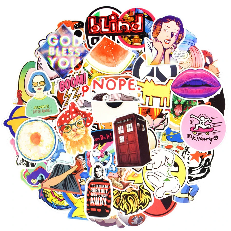 50 шт., наклейки из ПВХ для скейтборда, ноутбука, чемодана, велосипеда