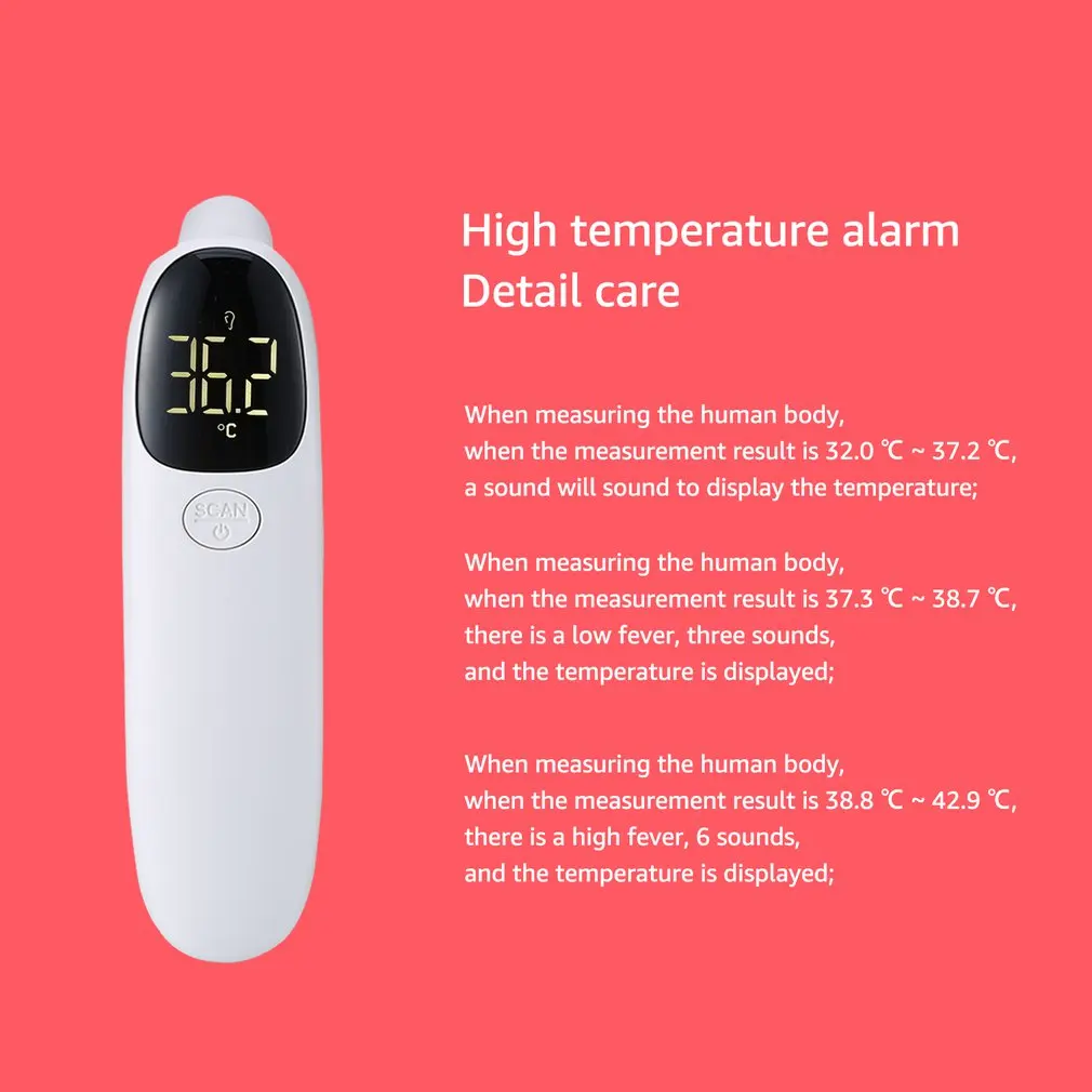 Характеристики:Мощность питания: 2 * ААА щелочные батареи 1,5 V (не прилагаются)Диапазон измерения температуры: 32 ~ 42,9 ℃ (человеческое тело)