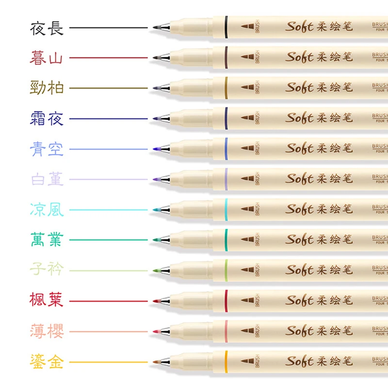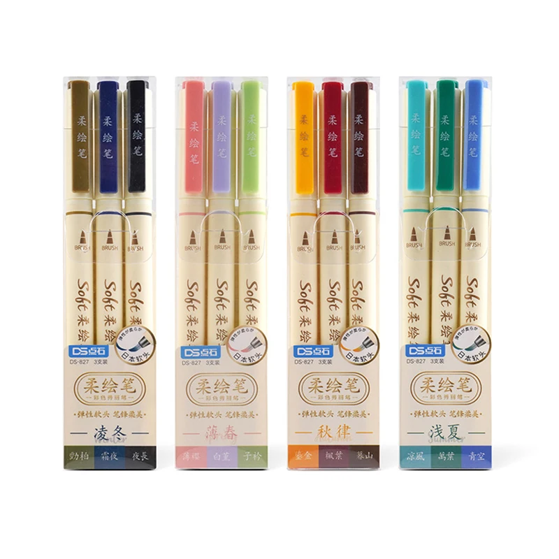 3 цвета/набор, мягкая кисть, четыре сезона, цвета, кисть, маркеры для раскрашивания, рисования, outlining journing, школьные принадлежности