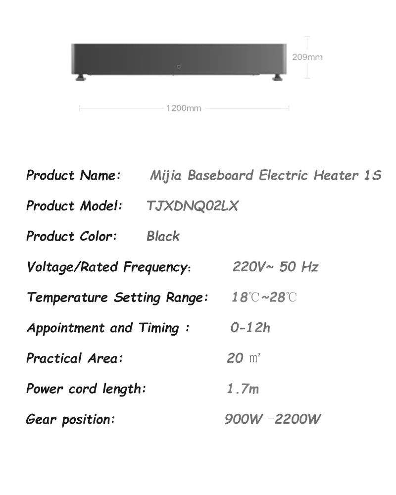 Номер моделиXiaomi Mijia Baseboard Electric Heater 1S TJXDNQ02LX