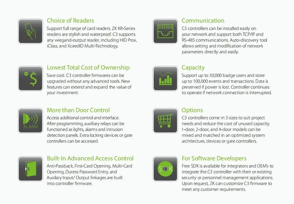 На основе IP панель управления доступом к двери доска контроллер ZK C3-100/200/400 решения для обеспечения безопасности системы контроля доступа 30000 пользователей Wiegand 26-бит