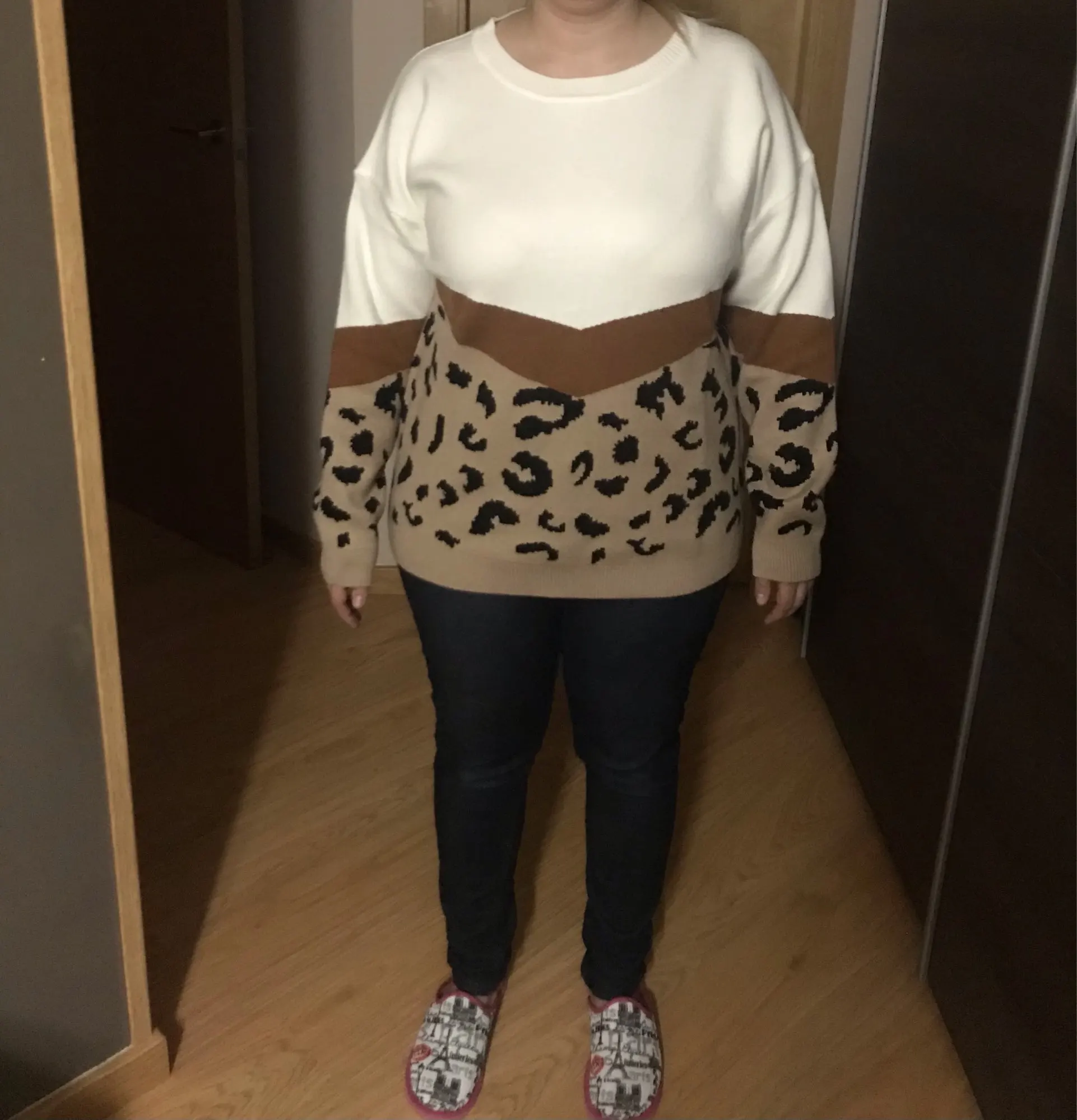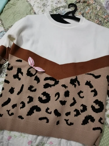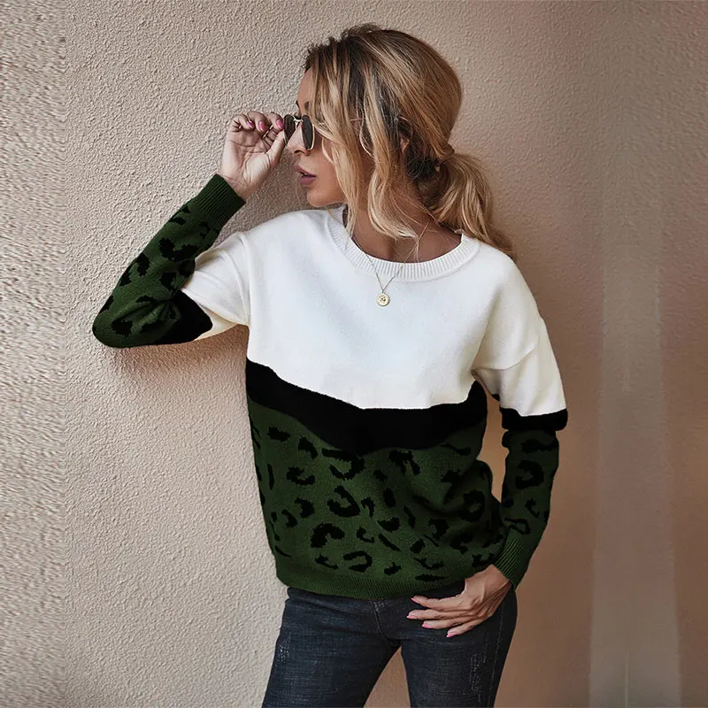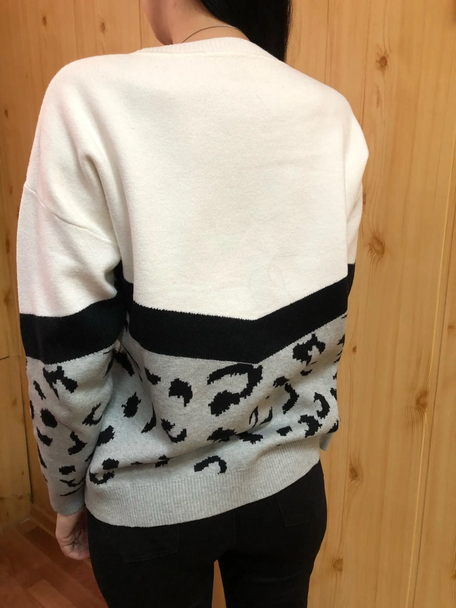 Осенне-зимний модный Леопардовый вязаный свитер для женщин, новинка 2022, повседневный пуловер с круглым вырезом и длинными рукавами, Топ