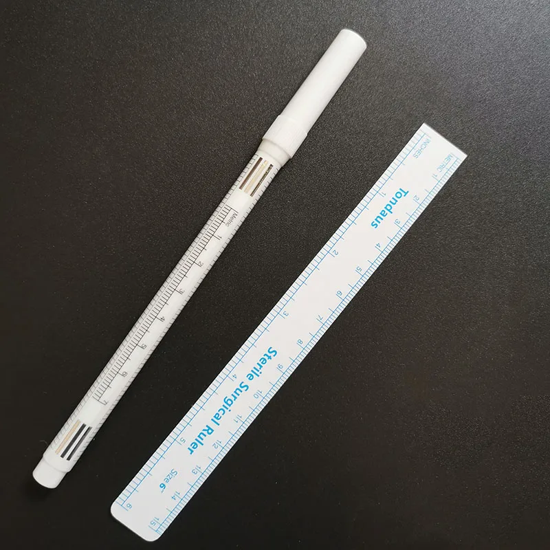 Белый маркер для тату, Перманентный макияж, хирургический маркер для кожи, ручка для бровей с измерительной линейкой, инструмент для позиционирования