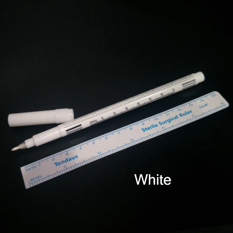 Белый маркер для татуировки, Перманентный макияж, хирургический маркер для кожи, ручка для бровей с измерительной линейкой, позиционирующий инструмент