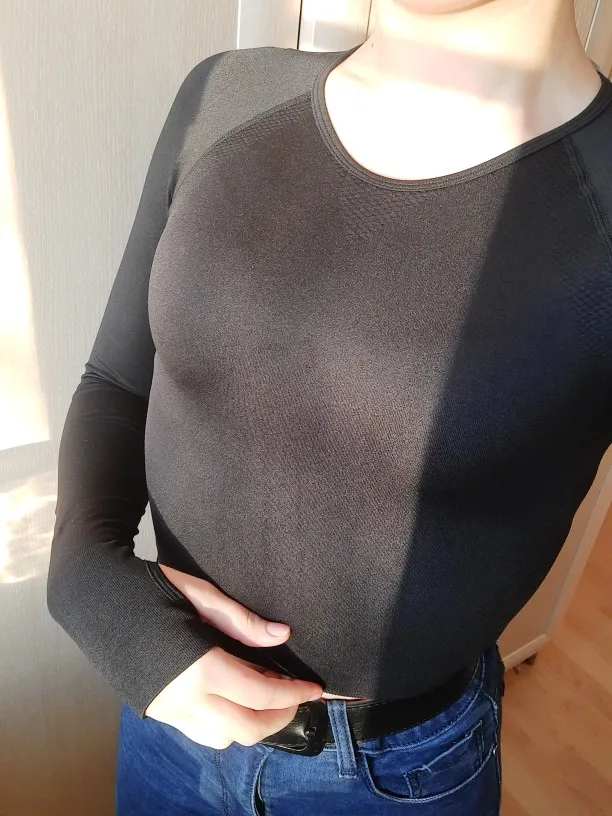 Топ отличный, но цвет не насыщенно чёрный, а скорее графит. Но материал очень приятный, мягкий, движения не сковывает. Советую для покупки