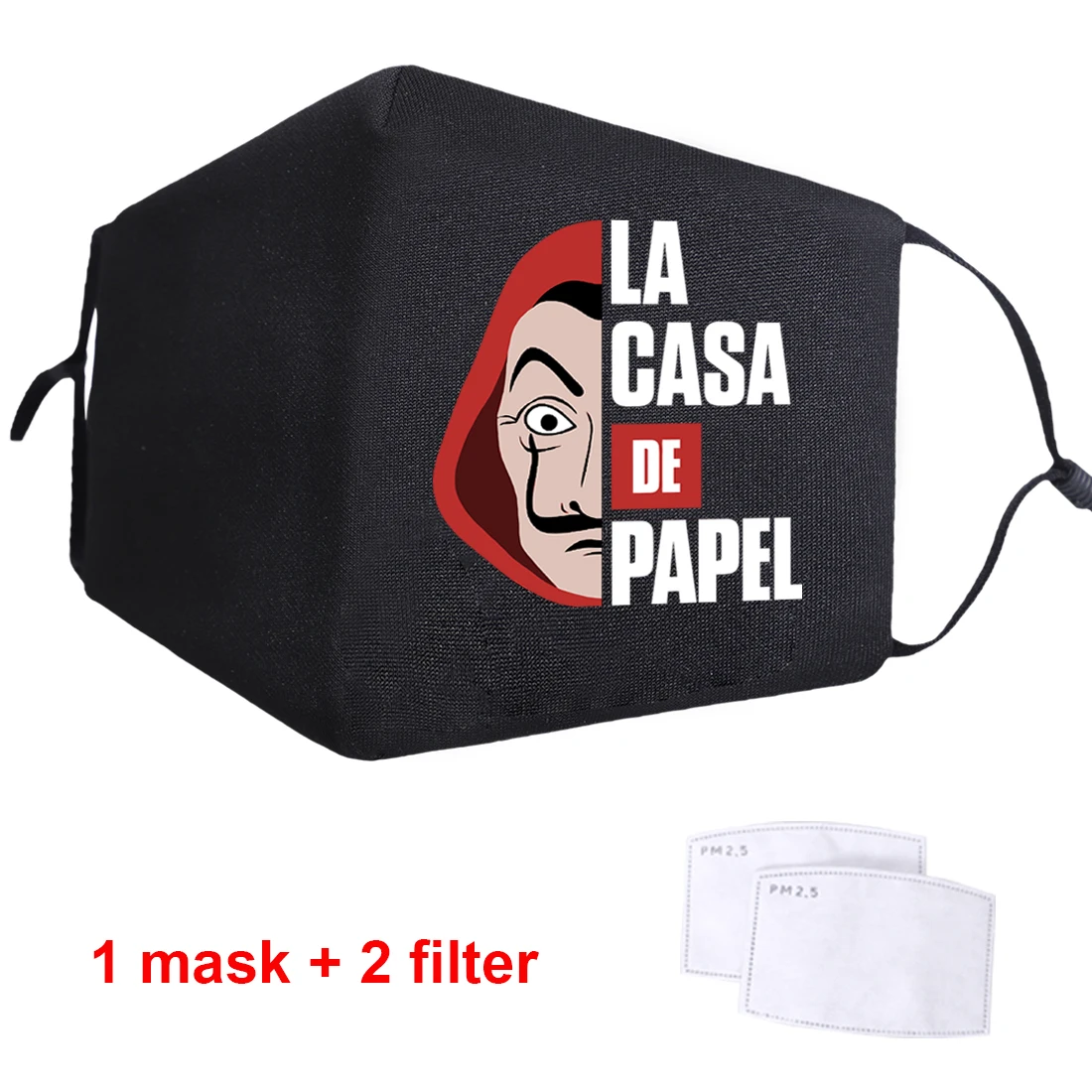 Мужская дышащая маска для лица La casa de papel, моющаяся дышащая маска из полиэстера с фильтрующей бумагой из активированного угля PM2.5 для взрослых