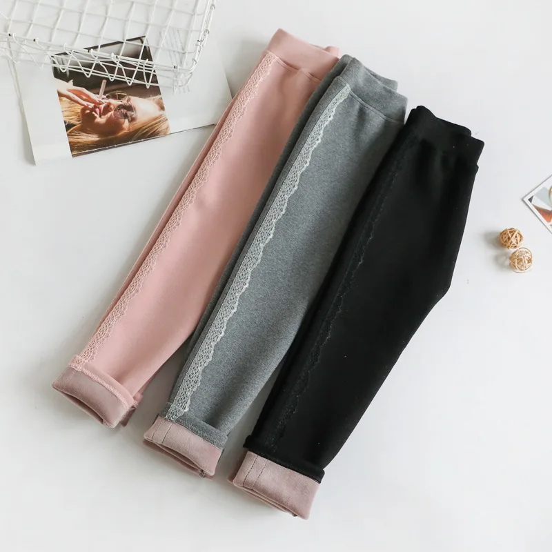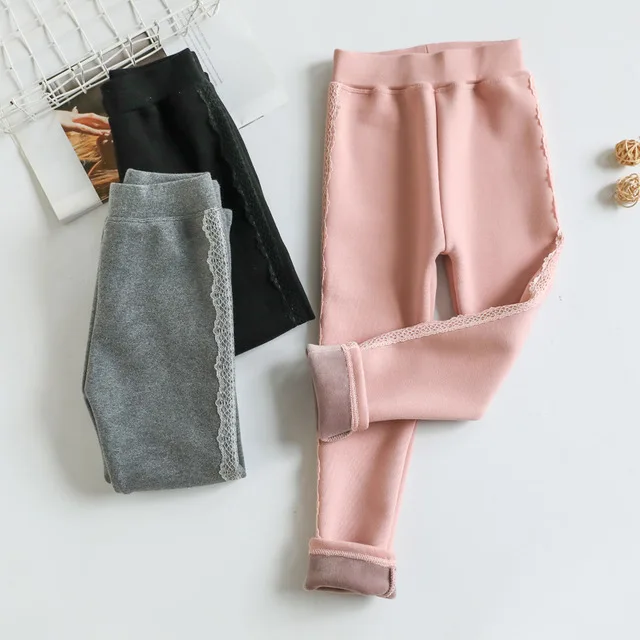 Детские зимние штаны 2020, утепленные теплые брюки для детей, кружевные леггинсы для девочек, бархатные брюки для подростков, детская одежда