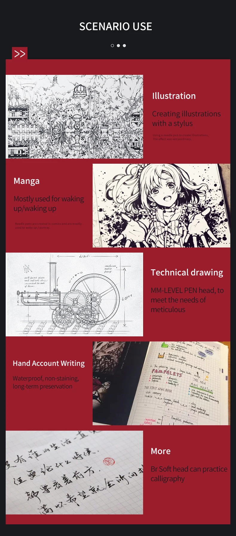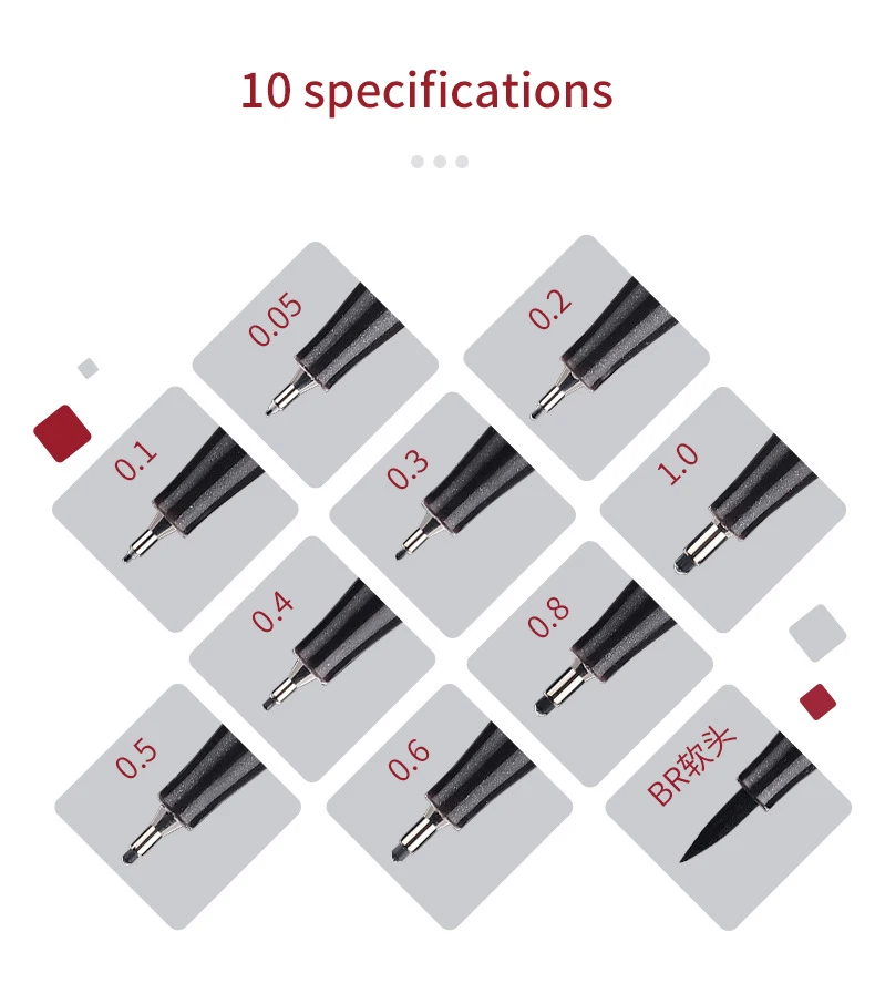 10 шт.компл. чернильный маркер с микроновыми чернилами 0,05 0,1 0,2 0,3 0,4 0,5 наконечники кисти черные наконечники для рисования манги маркеры