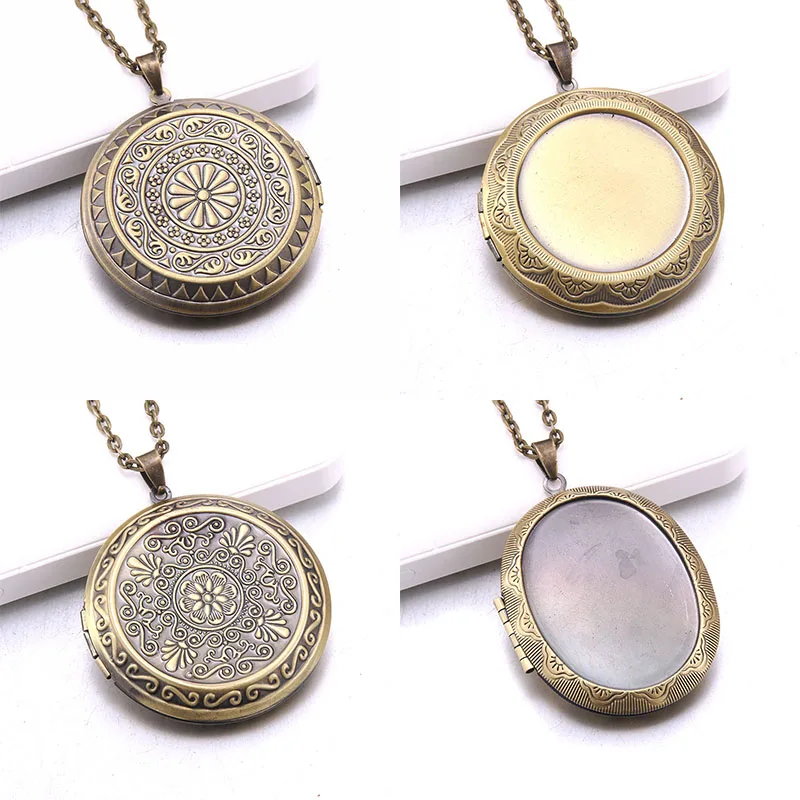 Память фото кулон ювелирные изделия Винтаж Медный резной цветок фот...