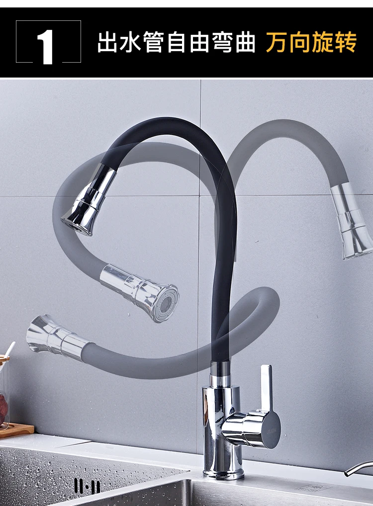 Силикагель нос в любом направлении вращающийся кухонный кран холодный и горячий черный синий смеситель для воды красный кухонный кран с одной ручкой