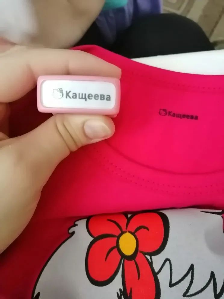 Доставка оперативная, держится на одежде крепко. к одежде клеить блестящей стороной, на матовкю ставить печать.