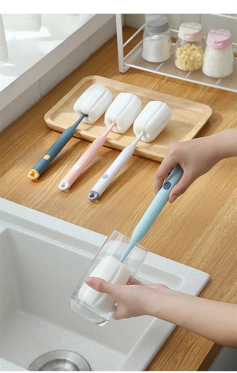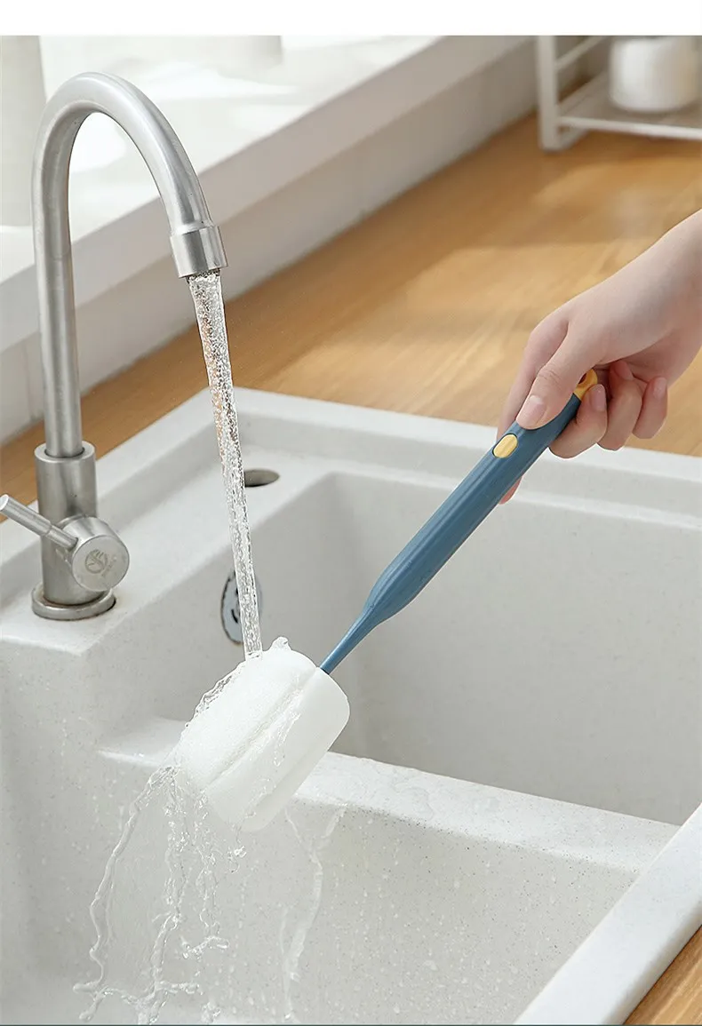 Съемная губка, Нетоксичная щетка для детской бутылки, кухонный инструмент для чистки бутылок, щетка для чистки бутылок, щетка для чистки термоса, щетка с длинной ручкой